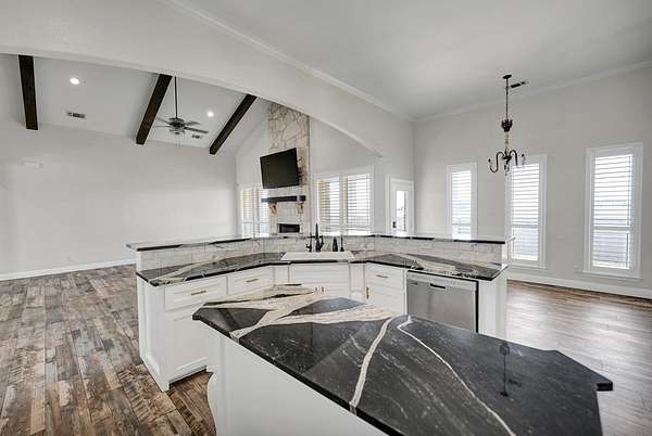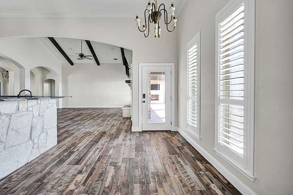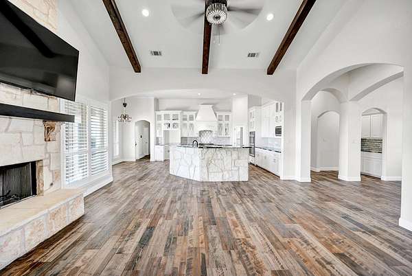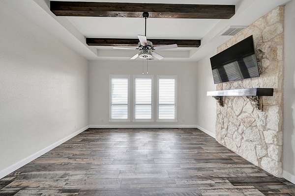 Est $5,207/moSpacious 5 bed, 3.5 bath home on 2 acres just minutes from town in North Midland. Built in 2020, this well-maintained property features an open-concept layout, high ceilings with wood beams, tile flooring, and a large stone fireplace. The kitchen offers granite counters, stainless appliances, island, and walk-in pantry. Primary suite includes dual vanities, soaking tub, and walk-in closet. Covered patio overlooks a fenced backyard. 3-car garage, water softener, private well & septic. No HOA. Build a shop, barn etc. Schedule a showing today!