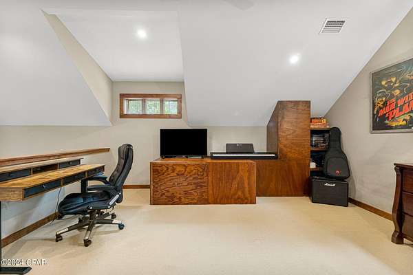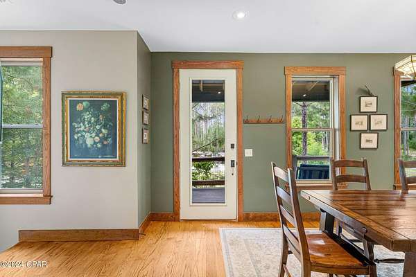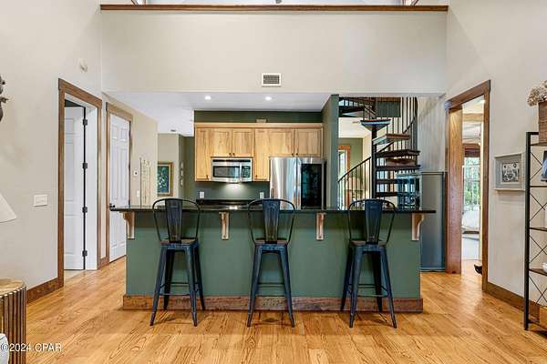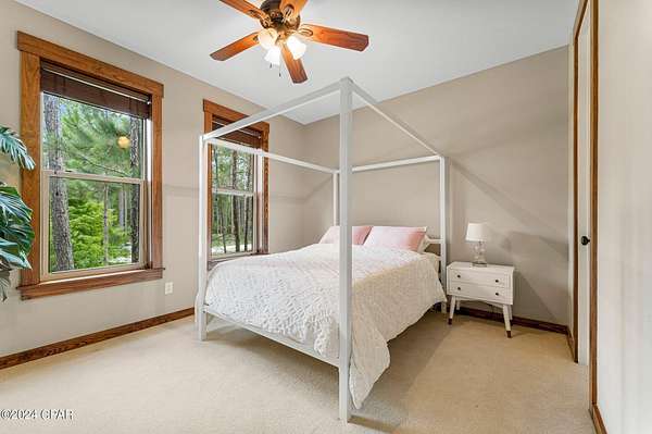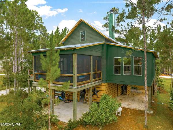 Discover the serene beauty of 7707 Magnolia Pond Trail, a stunning 3-bedroom, 2-bathroom home nestled on 1.8 acres in the desirable RiverCamps community of Panama City Beach, FL. Spanning 2,108 square feet, this spacious home offers a perfect blend of modern amenities and rustic charm.As you approach this elevated home, the inviting front porch welcomes you, providing a perfect spot to enjoy the tranquil surroundings. Inside, the open-concept living area features high ceilings and abundant natural light, creating an airy and welcomingatmosphere. The gourmet kitchen boasts stainless steel appliances, granitecountertops, and custom cabinetry, ideal for culinary enthusiasts.The master suite is a private retreat with a luxurious ensuite bathroom and access to aprivate deck, where you can unwind and take in the scenic views. The additional bedrooms are generously sized, offering comfort and privacy for family members or guests.The RiverCamps community is a paradise for water lovers, surrounded by Crooked Creek, the Intracoastal Waterway, and West Bay. Residents can enjoy boating, paddleboarding, fishing, and hiking through the community's extensive trail system. Theon-site boat ramp provides easy access to the Gulf of Mexico, making it perfect forboating.Experience the best of coastal living at 7707 Magnolia Pond Trail, where nature and luxury meet in perfect harmony. This home is a rare find, offering privacy, space, and access to a vibrant community with unparalleled amenities.