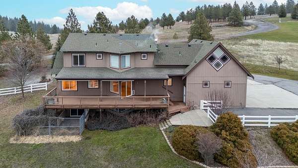 Perched above the countryside on 10 gently rolling acres, this private retreat offers breathtaking mountain and territorial views in every direction. A paved drive leads you up to a beautifully positioned two story home that feels tucked away from the world while still offering generous space for living, working, and entertaining. The home features four bedrooms and three and a half bathrooms, with a finished walk out lower level that adds a second living area ideal for guests, recreation, or extended stays. A spacious bonus room over the three car garage provides a flexible space for a media room, gym, studio, or home office. The main level blends traditional and open concept living with a formal dining room and a well appointed kitchen that includes an eat up bar and connects seamlessly to the living spaces. Large windows frame the surrounding landscape, filling the home with natural light and capturing the beauty of the rolling land and distant peaks. Step outside to a generous covered deck designed for re