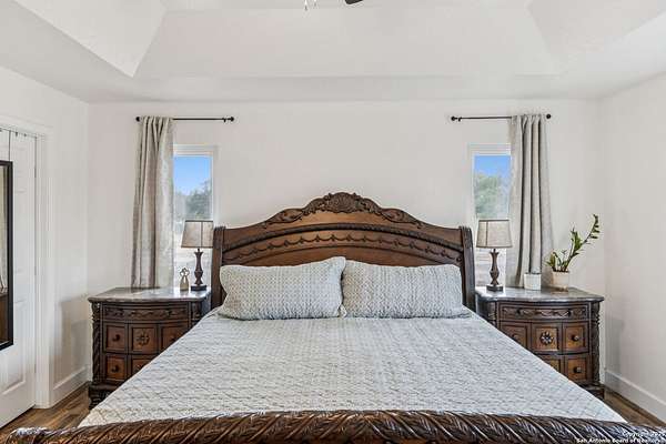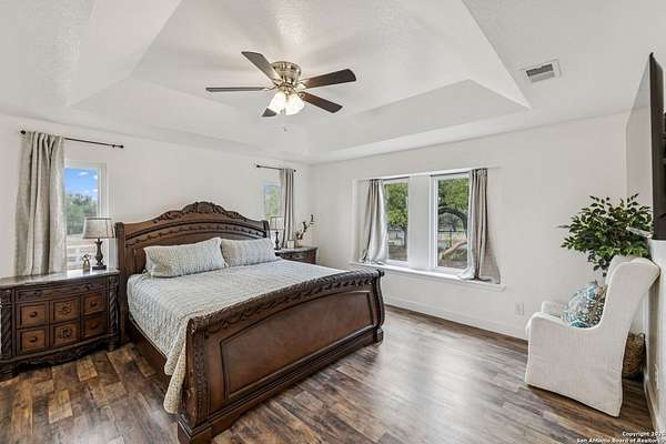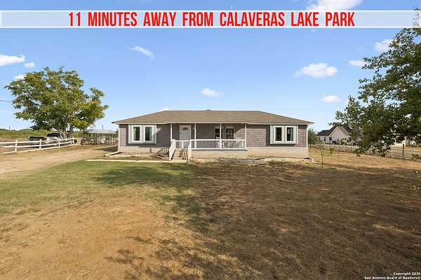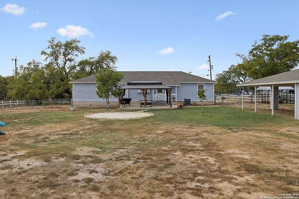 Welcome home to your beautifully renovated 3-bedroom, 2-bathroom home nestled on over 3 acres just outside San Antonio city limits. This property offers the perfect blend of country living and modern comfort. Step inside to find thoughtful upgrades throughout, including a spacious primary suite with a charming bay window and a spacious bathroom featuring a walk-in shower. The open layout creates a comfortable flow, ideal for both daily living and entertaining. Outside, enjoy a large covered and cemented patio perfect for relaxing evenings or weekend gatherings. The property also features a gated entrance, a 2-car covered addition, and a convenient shed for extra storage. With no restrictions, the land provides ample space for outdoor activities, gardening, or even keeping animals. Surrounded by quiet open skies yet still close to the city, this home is the perfect retreat for those seeking peace, privacy, and space to roam.