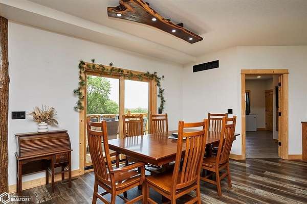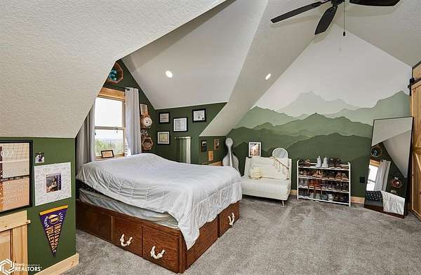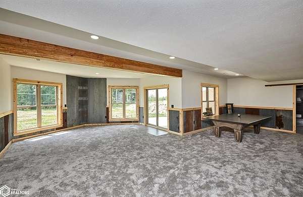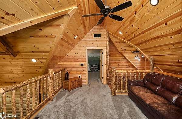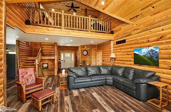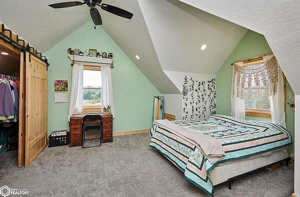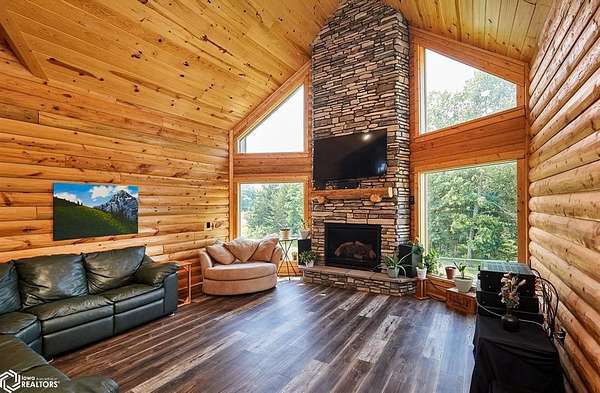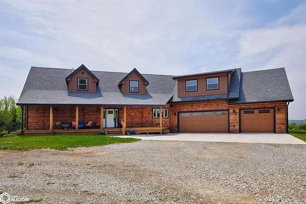 Luxury Timber Retreat with Premier Hunting on 98 Acres in Southern Warren Co., IA. Welcome to your dream retreat--where elegant living meets unmatched recreation on 98 pristine acres of mature, diverse hardwood timber. Situated just 13.5 miles southwest of Indianola and 3.5 miles east of New Virginia, this exceptional estate offers the perfect blend of privacy, elegance, and world-class hunting. A long, secluded driveway winds through the timber to reveal a beautifully crafted 1.5-story home, newly built in 2023. Offering 2,410 square feet of refined rustic charm, the home welcomes you with a floor-to-ceiling stone fireplace, expansive windows with woodland views, and a design that blends lodge-style warmth with modern elegance. The gourmet kitchen is outfitted with stainless steel appliances, granite countertops, and custom cabinetry. The main level includes a mudroom and laundry area with a half bath, and a luxurious primary suite complete with a private walkout balcony, a walk-in closet with built-ins, and a spa-style bathroom with dual sinks, a tiled shower, and a private toilet room. Upstairs offers 2 more bedrooms, a full bathroom, and an open loft den. The fully finished walkout basement provides additional space for guests or family with a large family room, 4th bedroom, and full bath. A massive, unfinished bonus room with vaulted ceilings and its own walkout balcony is already plumbed and ready to be transformed into a custom master suite. Visit our website!