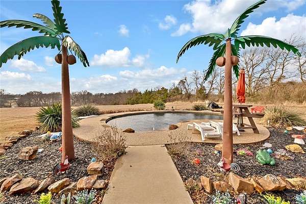 Experience the perfect blend of Texas country living and custom craftsmanship at this exceptional barndominium set on 13.34 sprawling acres in Howe. With room to roam, work, and play, this property offers incredible versatility for those seeking privacy, space, and functionality without sacrificing comfort. So much room to add animals, livestock, bees, gardening or even an orchard to make this Ag exempt, or you can build whatever you want. A rare opportunity to own a truly unique property with acreage, an active tree-lined creek, pool, and off of the beaten path for complete privacy and seclusion. Thoughtfully designed, this custom-built barndo offers 3 bedrooms and 2 full baths with one sharing the laundry room making it very spacious. The kitchen has tons of cabinets, with a little cute island to cook up those down home meals. The large living room is perfect for hosting those family traditions. The expansive 6-car attached garage is every man's dream as it provides endless space for vehicles, toys, or a workshop, complemented by an additional 2-car carport for added convenience right there at the door, where they happen to love to keep their mandatory John Deere tractor. Step outside to your completely private outdoor country oasis featuring an in-ground gunite pool and a covered outdoor party bar, perfect for entertaining, relaxing, or enjoying wide-open Texas sunsets or floating in that pool under all those bright stars. Outdoor possibilities will keep you outside all the time. For those animal lovers, they enclosed a room for the dogs to stay when not home, accessed by the doggie door when they don't want them in the backyard. No muddy paws on those rainy days and nights. This property has everything you need with room to grow.