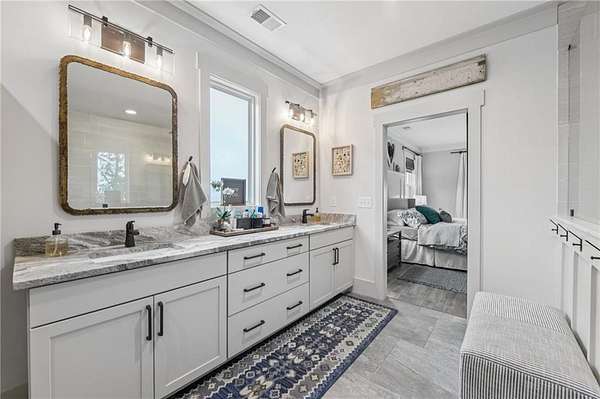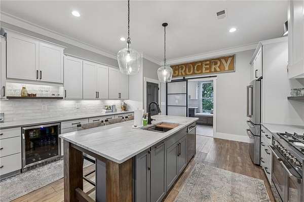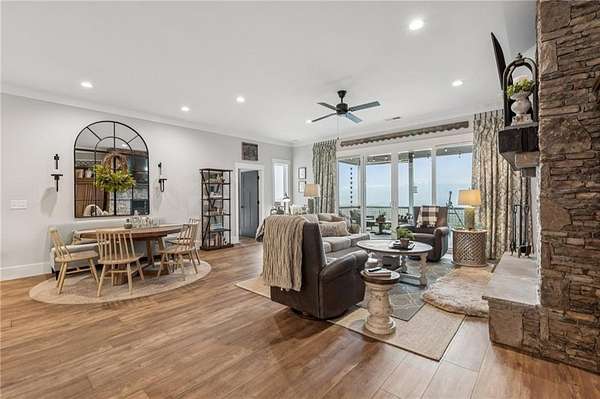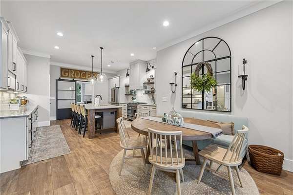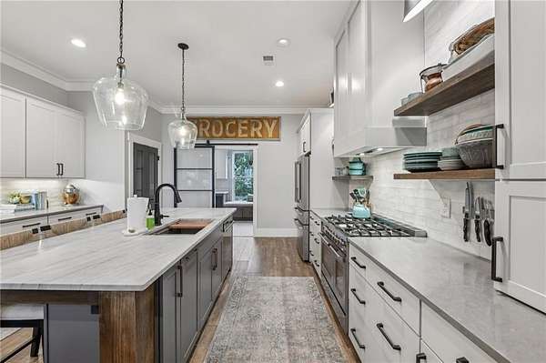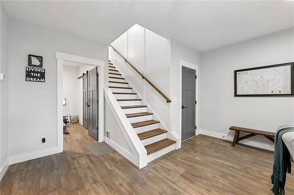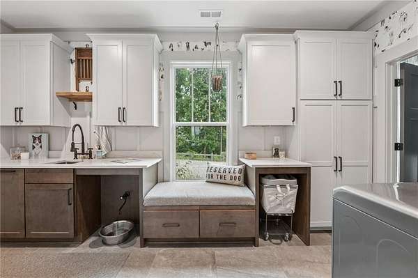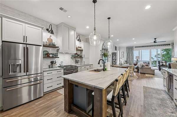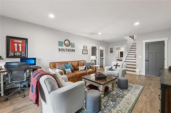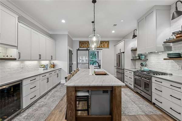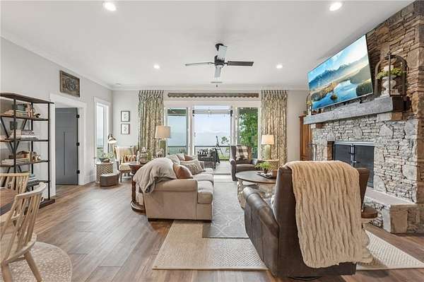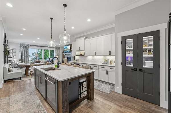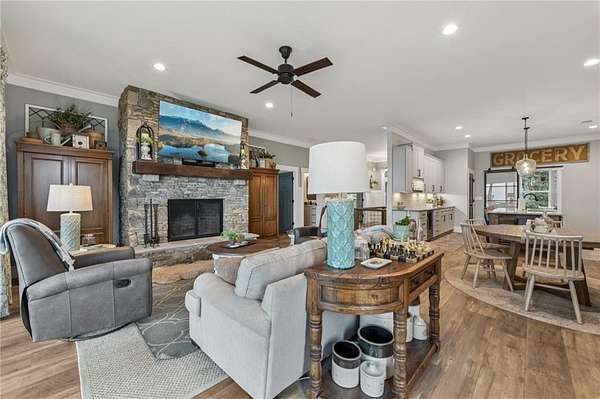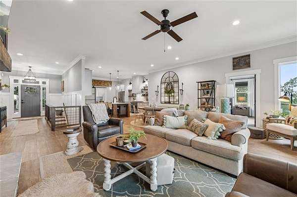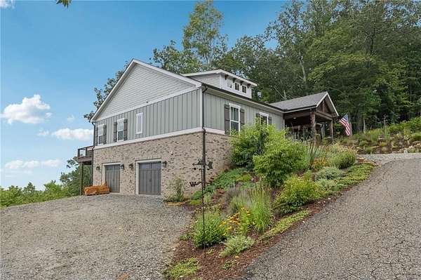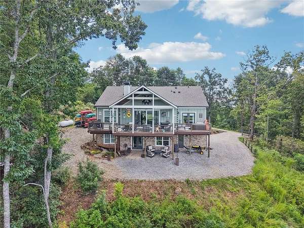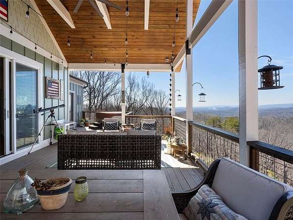 Take in the BREATHTAKING VIEWS of the Blue Ridge Mountains from your PRIVATE mountain retreat in Dahlonega. Situated at the end of a private street not accessible to through traffic, this home offers privacy & seclusion all wrapped up in gorgeous modern finishes. The sweet stone front porch welcomes you into the home where the moment you walk in your eyes will drift off to the picture windows beckoning in the stunning mountains beyond. The open concept living plan is accentuated by the best of the best in decor and materials, from board and batten, to custom wallpaper, tile work, stone and wood, texture and design can be found throughout the home. The kitchen offers a mix of open shelving, custom cabinets, a spacious custom pantry and a large island for casual meals. Complete with top of the line appliances including a 6 burner gas range & wine cooler this kitchen has everything a chef would desire. The MASSIVE Butler's pantry/mudroom/laundry room includes a sink, pet faucet for your furry friends and loads of additional cabinetry. The Primary bedroom even has access to the laundry room making this task a little more enjoyable. The Primary on Main is just what it should be, a relaxing retreat from the everyday complete with an en suite bath with its double glass shower, custom closet and don't forget the incredible views accessible from your private French doors leading out to the covered deck. Owner's will enjoy the dedicated office space with views of the beautiful landscape making this an enjoyable place to work. Another additional bedroom on the main living floor and a secondary bath complete the main living floor. Downstairs two more very spacious bedrooms and another full bedroom allow room for everyone and everything. The additional family room on the lower level also provides a great place to unwind, watch a movie or play games with family and friends. But you will spend hours relaxing and enjoying the outdoors on your covered back deck overlooking the mountains and enjoying unparalleled views. PLUS 700+ feet of NFS boundary! This home has SO much to appreciate, from design to views, this is a once in a lifetime opportunity. Make this your private residence or turn it into a profitable STR, the possibities are endless.