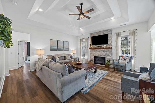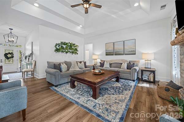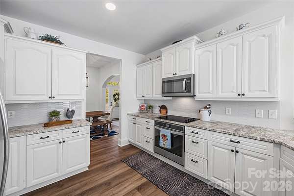 A rare opportunity to own a fully functioning homestead on approx 5 acres. This property features a small barn with 2 stalls, chicken coop, chicken run, and an established infrastructure designed for hands on, self sufficient living. It also includes a private wooded hiking trail offering peaceful and tranquil walks with enhanced privacy. This home has been beautifully renovated for easy living! A charming covered rocking chair front porch invites you inside, where new luxury vinyl plank flooring flows seamlessly throughout the main floor. The Dining Room is highlighted by a farmhouse chandelier and is perfectly suited for everday dining or formal gatherings. The Living Room features a dramatic triple tray ceiling and a stunning stone fireplace with a custom raw poplar mantle. The updated Kitchen features crisp white cabinetry, granite counters, white tile backsplash, large single basin sink, all new appliances, breakfast bar, dining area and pantry with sliding barn style door and provides style and functionality creating a bright modern space for everyday living. The split bedroom floor plan provides owner privacy and a well designed layout ideal for today's lifestyle. The spacious owner's suite features 2 walk-in closets and a fully renovated bathroom with tile floors, tile shower, 2 vanities with marble tops, a luxurious stand alone soaking tub and private water closet. Two of the other 3 bedrooms share a bath and one bedroom has an ensuite bath. Guests can enjoy the half bath off of the kitchen by the laundry room. The oversized attached garage has a walk-in door with keyless entry that leads to the back foyer with a drop zone. From the kitchen, the new sliding door leads to a back porch/patio, the back yard, a separate enclosed vegetable garden with defined walkway and raised beds, barn, chick coop, and pasture. There is an additional workshop with access from the driveway and from the back garden. Ask for a list of all upgrades and all items that convey for this working homestead including compost tumbler, rain barrel, riding mower, chickens, barn cats and more!