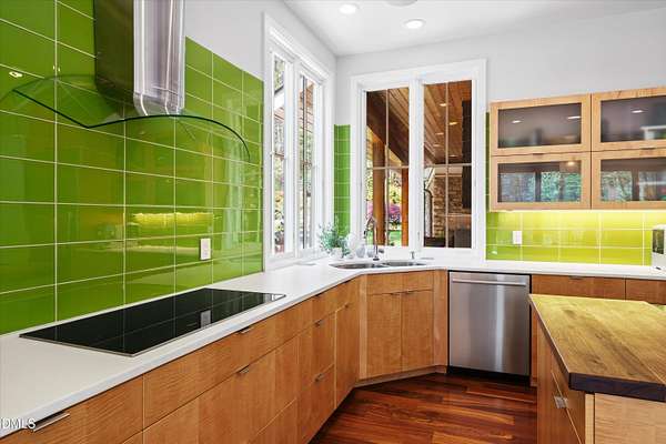 - Dishwasher, Dryer, Electric Water Heater, Induction Cooktop, Microwave, Plumbed For Ice Maker, Range Hood, Refrigerator, Stainless Steel Appliance(s), Wall Oven, Warming Drawer, Washer, Wine Refrigerator