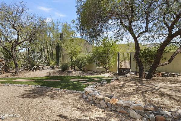 From Cave Creek Rd turn north onto Galloway Dr by Stagecoach Village. Continue as it turns into Grapevine Rd. Turn left onto 78th St and property is the gated entry in front of you - the first house on Arroyo Rd.