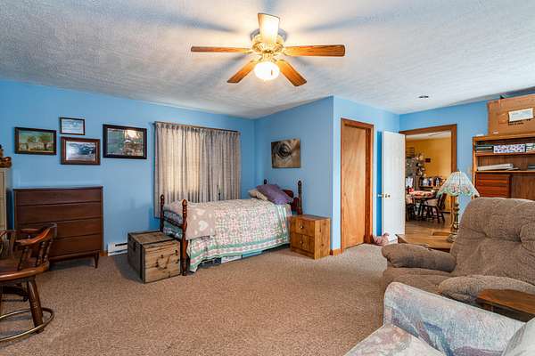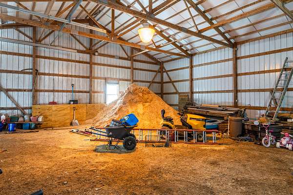 Opportunity Knocks! This spacious 5-bedroom, 2-full-bath home is set on an impressive 17-acre parcel, offering room to live, work, and play. Upon entry, you are welcomed by a large living room featuring a propane fireplace, creating a warm and inviting atmosphere.The expansive eat-in kitchen is well appointed with Corian countertops, a center island with range, and an abundance of cabinetry-ideal for both everyday living and entertaining. The first floor includes a primary bedroom with an en suite bath, a second bedroom, and a second full bath that provides convenient access to the laundry room.Upstairs, you will find three additional bedrooms along with a generously sized loft that offers flexible living or recreation space.Outside, the property truly shines with two 60' x 40' barns. One barn is ideal for garage and equipment storage, while the second features three horse stalls with room for expansion, two livestock stalls, and additional hay storage. Both barns are equipped with electricity, making this an excellent setup for farming, equestrian use, or hobby operations.