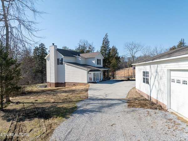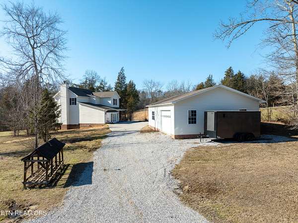 Set on 4 unrestricted acres in South Knox County, this property offers a rare combination of privacy, usable land, and proximity to everything that matters. This 3 bedroom, 2.5 bath home features just over 2,200 square feet of living space surrounded by space, opportunity, and a sense of quiet that is increasingly hard to find this close to town. A year round creek runs along the back of the property, creating a natural boundary without any floodplain concerns or risk to the home. An additional adjoining 4 acres is also available, offering the opportunity to expand to a total of 8 acres if desired. The layout is straightforward and functional, with hardwood flooring throughout much of the main level, tile in the kitchen, baths, and living areas, and all bedrooms located upstairs. A second family room on the main level provides flexible space that works well as a rec room, media room, or man cave. What truly sets this property apart is the utility it offers beyond the home itself. A nearly 1,500 square foot detached garage and workshop creates opportunities that are difficult to find. Whether you need space for ATVs, woodworking equipment, tools, or large scale projects, this building can support it. With no restrictions, the property allows for a wide range of uses and future possibilities. The home is positioned to balance privacy and accessibility. The existing driveway comes off a private road to the rear of the home, while the front of the house faces a public road buffered by mature trees and open space, creating both seclusion and the potential for alternative access. Located in South Knox County, this property sits in an ideal position between Maryville and Alcoa, downtown and East Knoxville, and along the route to Sevierville. Local schools, daily conveniences, and major routes are all within easy reach. This is not a property designed to blend in. It is one that offers space, freedom, and flexibility, with the rare option to grow into even more land over time.