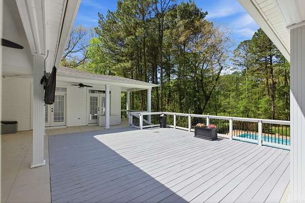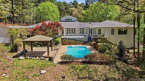 Privacy, elegance, and location come together on this estate set on over 6 wooded acres in the heart of Little Rock, where a gated entrance offers complete privacy and peaceful surroundings. This one level home offers 6 bedrooms, 5.5 baths, two primary suites, and a media room, all tucked away minutes from the Outlets and city access. Bathrooms have been beautifully renovated with new stone, hardware, and lighting throughout. The kitchen has been thoughtfully reimagined with painted cabinetry, new countertops, updated lighting, a coffee station, pantry, and a spacious island, all flowing into the family room with beautiful, vaulted ceilings and abundant natural light, creating an ideal space for entertaining and everyday living. Hardwood floors extend throughout the home, all bedrooms feature walk in closets, and the laundry/mud room adds function. Outside, the setting feels like a private resort with an inground pool, new gazebo, and deck overlooking the pool. The property also includes a 30x40 shop, and a newly added two car garage for the in-home gym makes this a 6-car garage, while the lawn sprinkler system adds everyday ease. Agents see remarks for additional property.