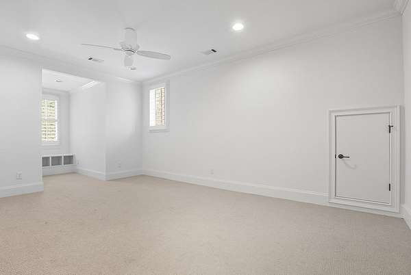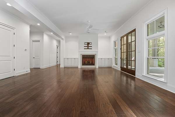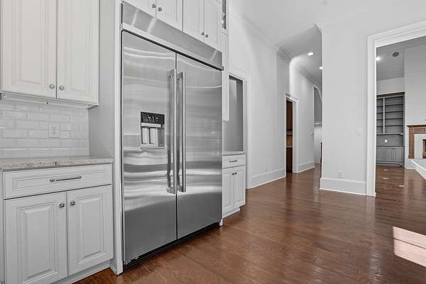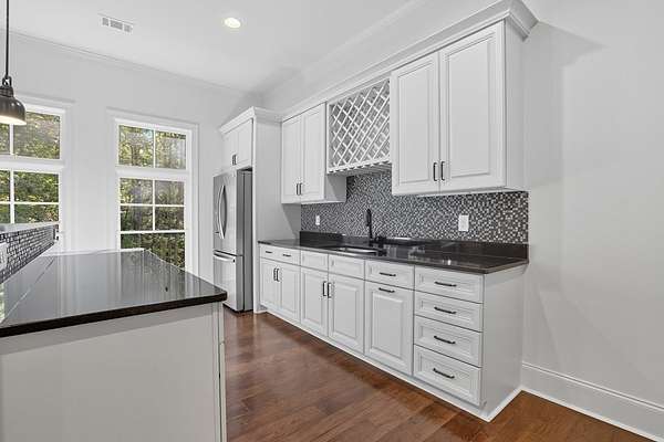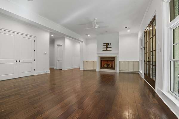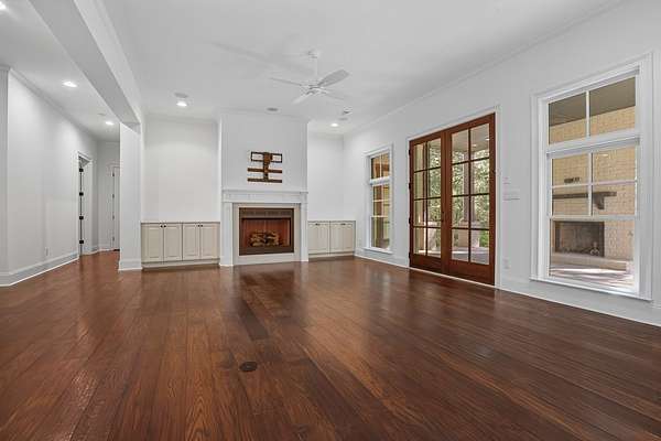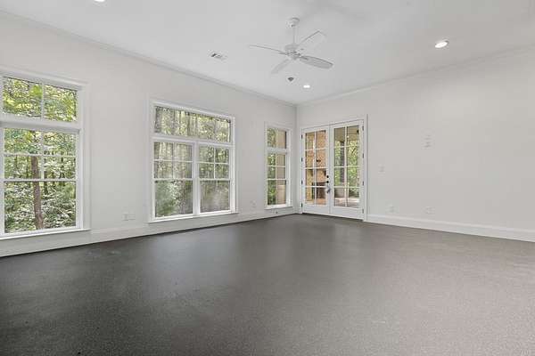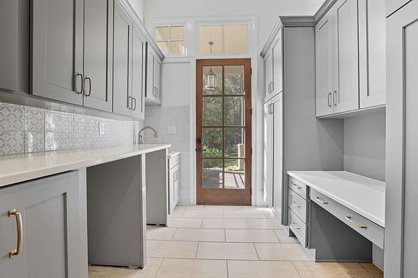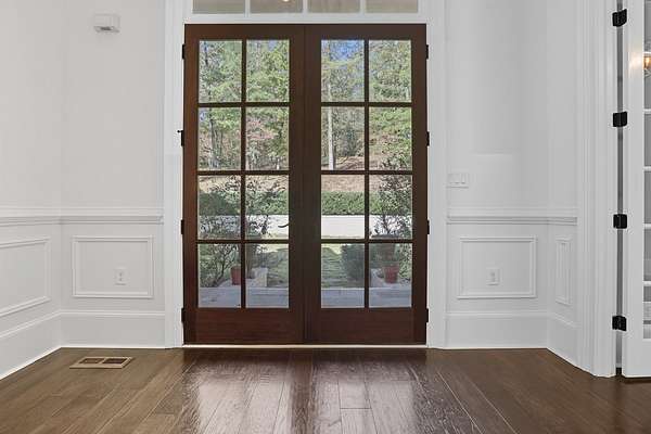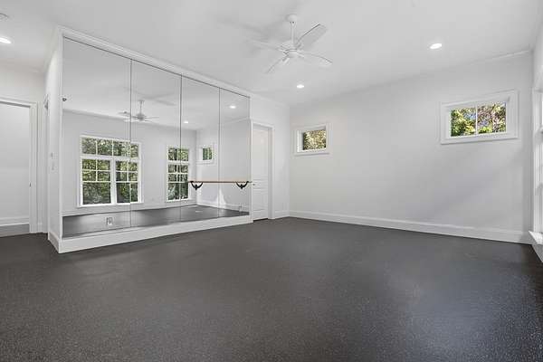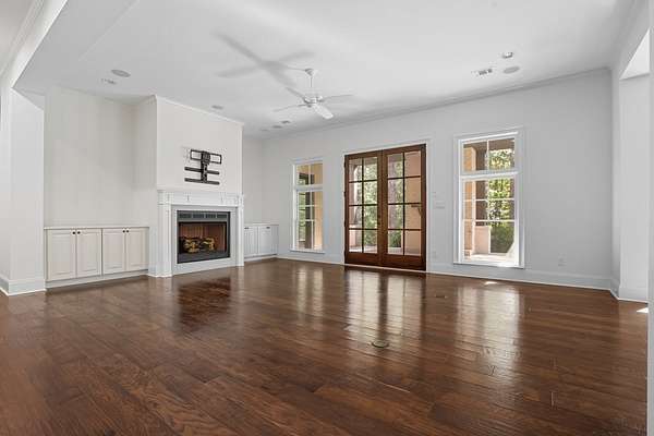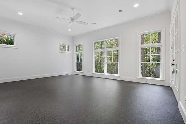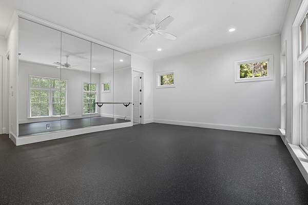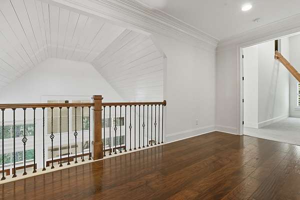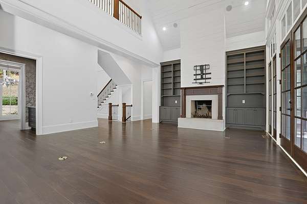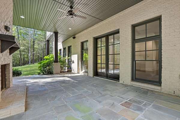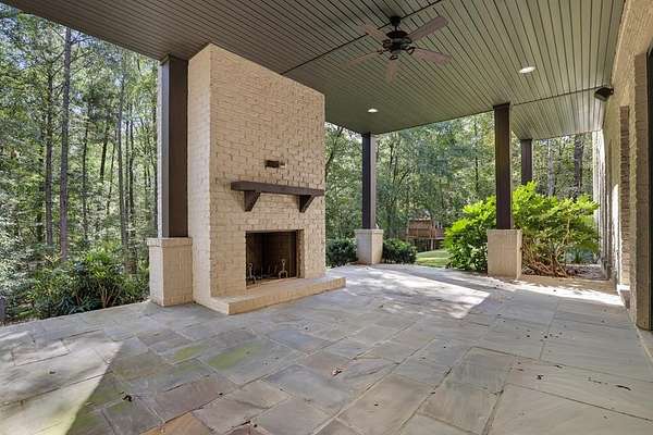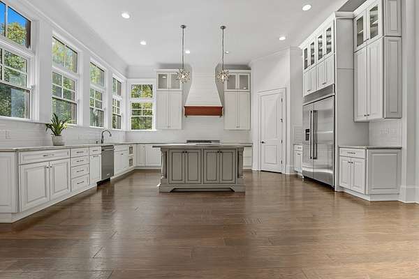 Tucked away on a serene cul-de-sac, this extraordinary estate offers unparalleled flexibility and luxurious living. Gleaming hardwood floors flow throughout a sunlit interior where custom windows, upscale finishes, and curated details create a rare ambiance. The gourmet kitchen is a chef's dream, featuring a gas range, double oven, island with drawer microwave, new Jenn Air refrigerator, walk-in pantry, and an efficient open flow to the adjoining living spaces. The greatroom boasts soaring shiplap ceilings, a striking stacked-stone fireplace, custom built-ins, and access to the covered porch. The main-level owner's suite is a sanctuary unto itself, with abundant natural light, private deck access, dual walk-in closets with custom closet systems, a spa-inspired bath with freestanding tub, frameless glass shower, and separate vanities with built-in storage. The main level also includes a private home office, a formal dining room with built-in bar area, a stylish half bath, and functional laundry room with custom cabinetry and sink, and a 3 car garage. The terrace level presents a complete secondary living space, including a designer kitchen, full bath, cozy fireplace, a home gym or additional bedroom, storage galore, and a private covered porch. Upstairs, discover three additional bedrooms each with their own attached bathroom, a breezy catwalk, and a spacious media room with a hidden ladder leading to a fun loft area. Gather around the outdoor fireplaces or custom fire pit, explore the whimsical treehouse, or unwind in the expansive, fenced backyard-designed for both play and relaxation. Enhanced with new plantation shutters, custom closet systems, and leaf guard gutters, this home is the perfect blend of elegance, comfort, and thoughtful design.