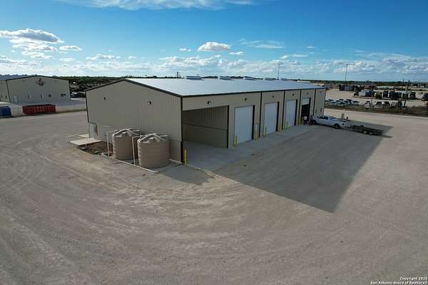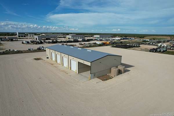 FOR LEASE ONLY - 5.1 acre industrial yard just south of Pleasanton with 9,460 sq ft building of which 1,560 sq ft is office space and 7,800 sq ft is warehouse. Offices include a reception area, shop foreman's office, break area, 3 private offices, shop restroom, and a data room. The warehouse has 20' high eves with 4 - pull-thru bays each having 2 - 16' x 16' roll-up doors. 400 amp 3-phase power is on-site. Numerous like-kind oilfield yards operating in the general vicinity.