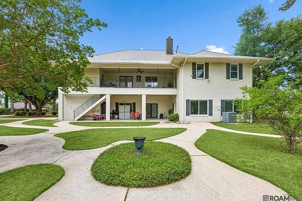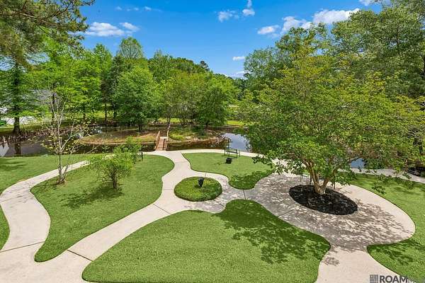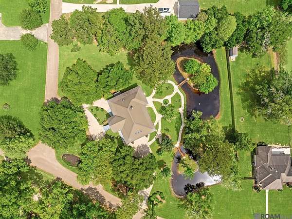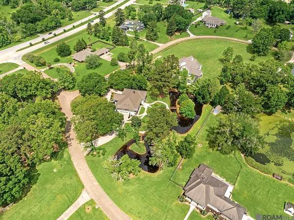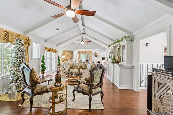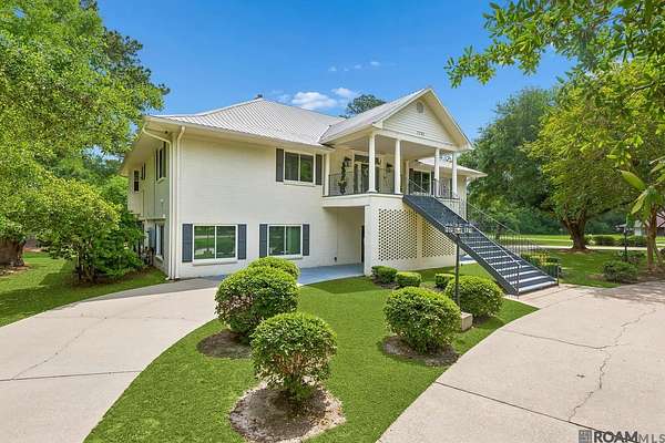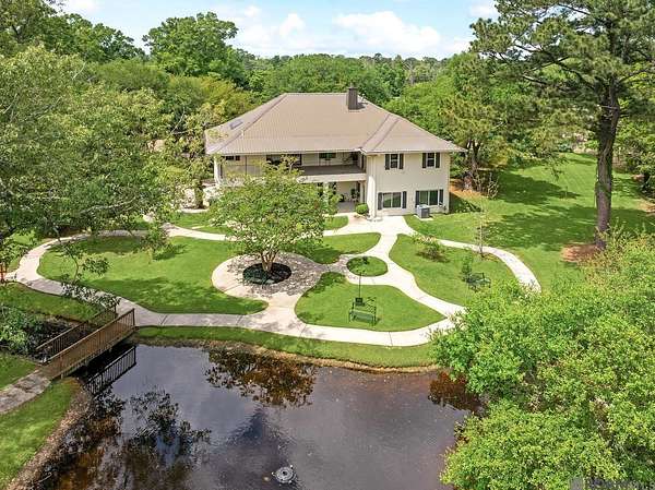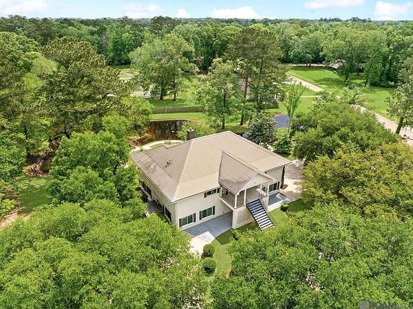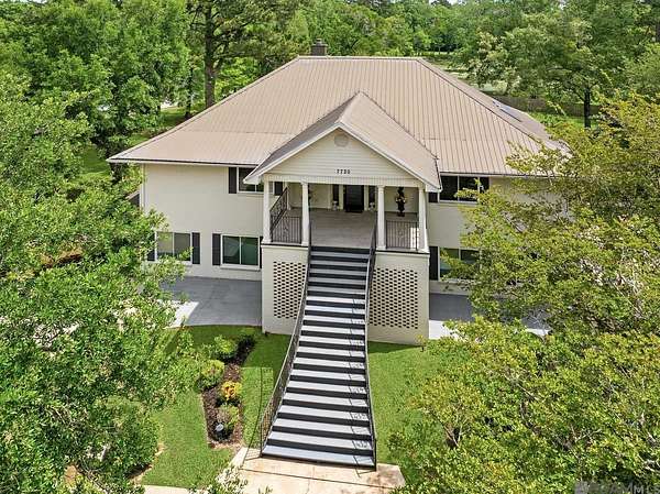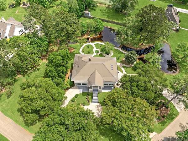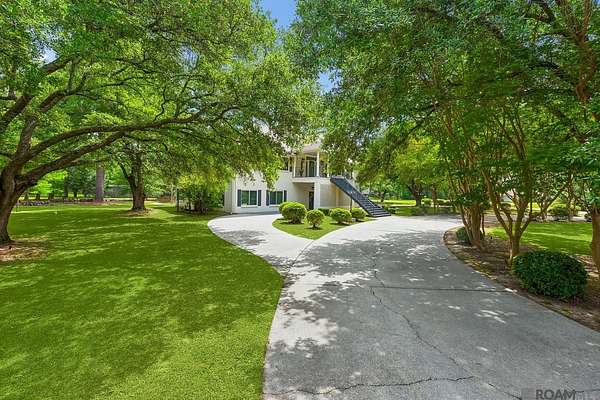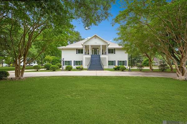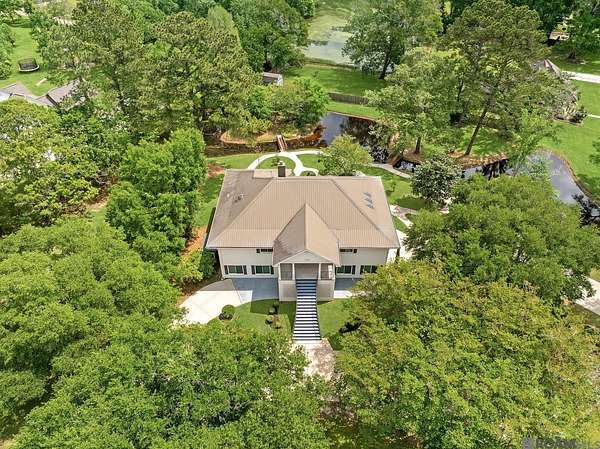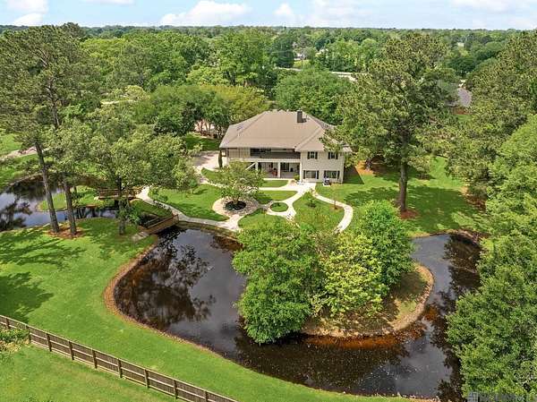 Nestled on 1.5 park-like acres, this estate offers a rare blend of architectural grandeur and serene natural beauty. As you approach via the crepe myrtle-lined driveway, the mature trees and lush landscaping create an immediate sense of privacy. The heart of the home is a magnificent large living room, anchored by a stately fireplace and framed by stunning architectural details. From here, step out onto the upstairs porch to enjoy elevated views of the sprawling grounds. For those who love to entertain, the floor plan flows seamlessly from the formal dining room to a spacious eat-in kitchen, perfect for morning coffee or family meals. This home is thoughtfully designed for multi-generational living or guest comfort, featuring two primary suites. The lower level adds a layer of sophisticated fun with a dedicated flex space complete with a wet bar, ideal for a media room, home gym, or executive lounge. The three car garage and large utility room add to the convenience of this home. On top of everything else this private retreat has to offer, it also stayed high and dry in 2016!