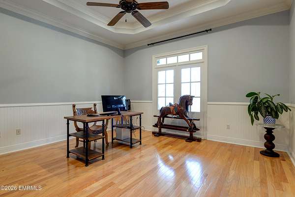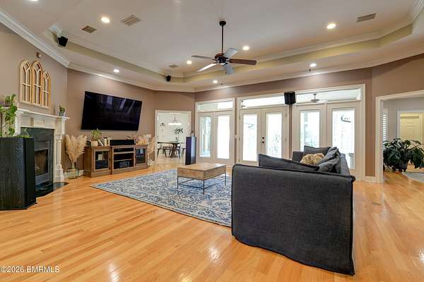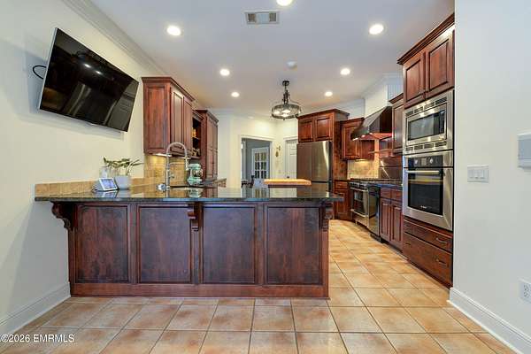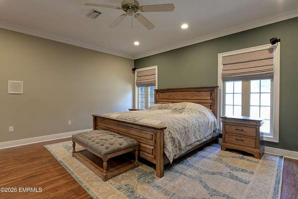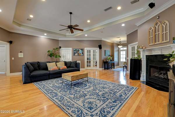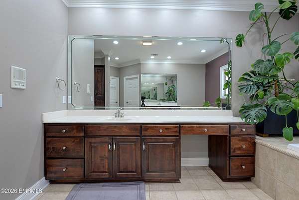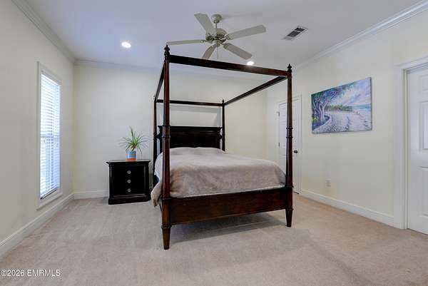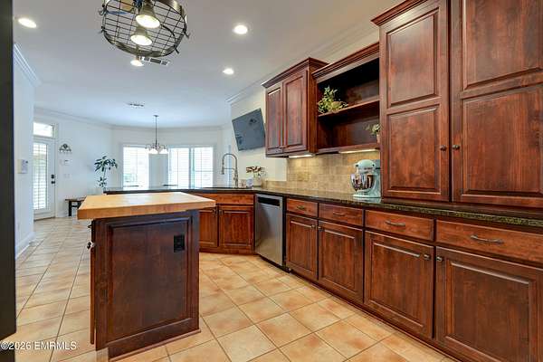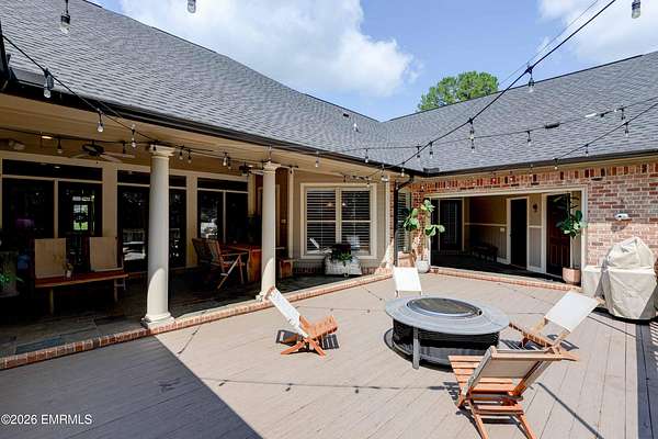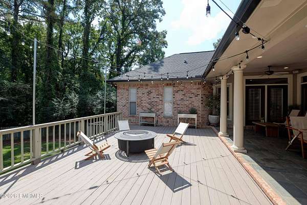 Stunning, traditionally styled Southern home blending timeless charm with modern comfort! This 4-bed, 4.5-bath residence offers a highly functional layout with spacious rooms & Smart Home technology throughout. The gourmet kitchen features a professional-style range, granite countertops, & an island with butcher block top. The spacious living offers gas FP & lots of natural light. There's a dedicated beverage station w/ ice maker & a huge pantry. The oversized primary suite boasts a cozy sitting area with gas fireplace & a luxurious, spa-like ensuite. Each bedroom includes its own adjoining bath. Enjoy a covered back porch & lovely deck-perfect for entertaining-plus the privacy of a fenced backyard. New roof, updated HVAC systems, 3 water heaters, & abundant storage complete this home.