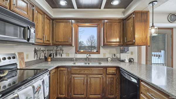 Welcome to your DREAM HOME nestled on 2 picturesque ACRES in a peaceful rural setting, yet just a short drive from Allen County amenities and in the top-rated NACS Schools! This beautifully maintained late 1980's residence combines classic charm with thoughtful style and a timeless layout perfect for family living. Step inside to discover a warm and inviting floor plan boasting 4 spacious bedrooms and 2.5 baths across 2,200 square feet of well-designed living space. The heart of the home features a cozy GAS FIREPLACE, perfect for relaxing evenings with family or entertaining friends. The living areas flow effortlessly, offering both formal and casual spaces to suit your lifestyle. Natural light pours in through generous windows, highlighting the comfortable, open atmosphere throughout. This home also offers: NEWER WATER HEATER. ALL APPLIANCES STAY! Attached 2-car garage that is convenient with secure parking. A very LARGE SHED (16 X 12) ideal for storage, workshop space, or hobby gear. Private, scenic 2-acre setting with room to roam, garden, play, or simply enjoy country living. You'll love being surrounded by serene landscape while still enjoying easy access to schools, shopping, dining, and everyday conveniences. Don't miss your chance to own this lovely home where space, comfort, and location come together beautifully. Schedule Your Showing Today! Your rural oasis awaits!