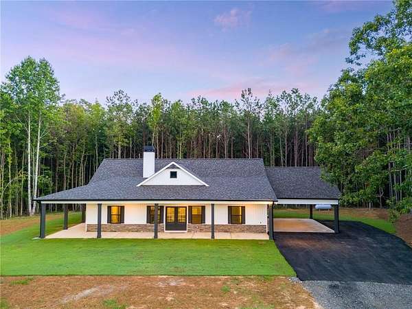 Construction is about to begin! This beautiful NEW HOME offers Modern FARMHOUSE LIVING at its BEST on a lush 10 PRIVATE ACRES!. This modern farmhouse RANCH with a full WRAP-AROUND porch provides the country living you are dreaming of. With over 10 ACRES of land and a thoughtfully designed open concept, this home is ideal for those who desire comfort, style & country living. The spacious vaulted family room will feature a wood-burning fireplace. The gourmet kitchen showcases a VENT HOOD, CUSTOM ISLAND, FARMHOUSE SINK, STAINLESS APPLIANCES, shaker CABINETS, GRANITE COUNTERTOPS & spacious pantry. The primary suite offers a luxurious ensuite bath with double vanities, a breathtaking OVERSIZED CUSTOM TILE SHOWER & custom glass door, and a large walk-in closet. Two generously sized secondary bedrooms, each with large closets, and each bedroom has direct access to a JACK & JILL bathroom. The oversized laundry room/mud room will feature cabinets for extra storage & is well designed for FARM HOUSE LIVING! The oversized FULLY WRAP AROUND PORCH is what farmhouse living dreams are made of, from drinking your morning coffee to entertaining family & friends. Standard features include vinyl siding, BLACK EXTERIOR WINDOWS, beautiful luxury LVP in the kitchen, living room, entry, and baths; plush carpeting in the bedrooms; and high-quality finishes throughout. Enjoy the freedom of a PRIVATE LOT with no HOA, combining tranquility with convenient access. Choose your interior and exterior colors to truly make this home your dream home! This modern farmhouse ranch combines functionality with beauty and is the perfect place to call home. With over 10 acres of land, a barn, and a thoughtfully designed layout, this home is ideal for those who desire both comfort and style. Don't miss your chance to make this dream home yours! Not quite the right floor plan? We have other options available! Don't miss this unique opportunity to create your dream home in a tranquil setting. Be sure to inquire about our incentives when utilizing our preferred lenders. The photos are not of the actual home but represent this plan. (Lot and drone pictures are of the lot.)