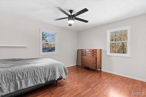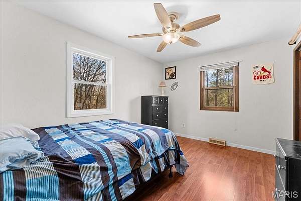 5 ACRES. NO HOA. PEACE & QUIET. Looking for relaxation? This is it. This 5 bedroom, 2 bathroom home in Waterloo sits on 5 beautiful acres with mature trees, abundant wildlife, and zero HOA fees. Want to 4-wheel? Go for it. Want space between you and the neighbors? You’ve got it. Enjoy your morning coffee on the deck overlooking your own private, scenic backdrop. Cozy up in either the living room or family room, both featuring wood-burning fireplaces and built-in bookcases for that warm, inviting feel. The 30x50 outbuilding is more than just storage, it’s a destination. Featuring a concrete floor, electric, heat, a built-in bar, and currently set up for gatherings, it’s ready for game nights, parties, or weekend hangouts. There’s even a loft for additional space, perfect for storage, an office, or bonus hangout area. Whether you’re into woodworking, working on cars, storing equipment, or finally having the ultimate workshop, you have the space to do it here. If you’ve been craving calm, privacy, room to roam, and space to entertain and create, this one delivers.
