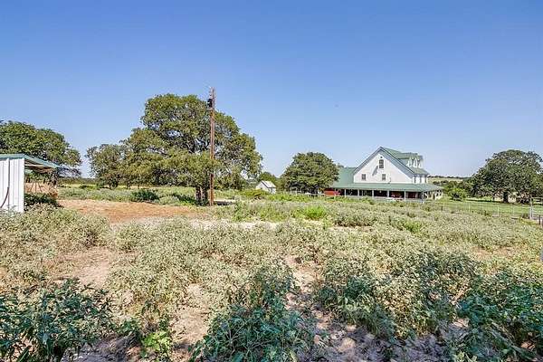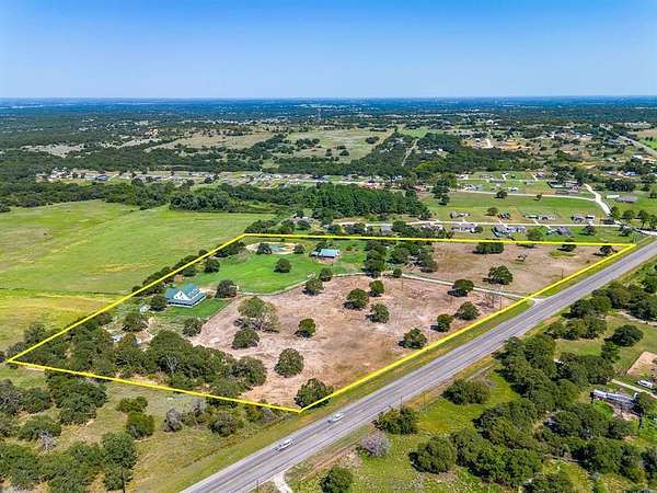 The country farmhouse everyone is looking for. BIG wrap-around covered porch with a standing-seam steel roof. A very versatile property. Owner is willing to split it up- House and pond on ~5 acres for $ 500,000, or the house on the full ~ 17.52 acres for $ 1,1000,000. (See attached survey diagram). Could be a residence, a horse facility, pipe-fenced and cross-fenced for livestock, OR ~17.52 acres of prime commercial property with over 1,250 feet of state highway frontage. Currently has an AG exemption on about 15 of the 17.52 acres and no known restrictions. North of town outside of City Limits. Serviced by Walnut Creek SUD, but there are also 2 water wells and two septic systems. Stock pond near the northeast corner of the property can use some work. There's a large metal building with electric than can be a barn or workshop. The mobile home on the property is uninhabitable. The house itself is 4 bedrooms with the owner's suite down, and 3 huge bedrooms up. Second floor gameroom PLUS expansion space with a 3rd floor bonus room that is framed in, and not counted in the square footage. House has foam insulation. Beautiful stone-hearth fireplace with gas logs is the focal point of the downstairs living room. BIG oversized 2-car garage. Second 24x22 detached garage over by the mobile home. Main house is set way back towards the rear of the property for added privacy. The home needs work, which is why we do not have interior photos.