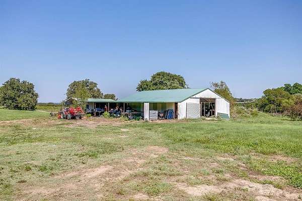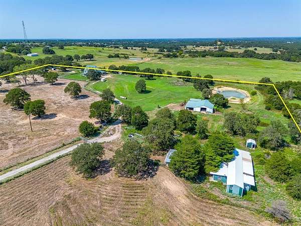 SO many possibilities with this one. Seller is willing to divide the property. Currently an ~ 3,000 sf farmhouse on 17.5 acres, THIS PRICE is for ~12.5 acres at the front, will be approx. 1,180 feet of state highway frontage, ideal for a multitude of commercial uses. Outside city limits and no known restrictions. Ag exemption currently in place. Very picturesque rolling acreage with beautiful trees. Cross fencing and gates for livestock. This can be almost anything from a small horse or cattle property, to a commercial use property. One water well and septic, but it also has water from Walnut Creek SUD. There's a large metal building that can be a barn or workshop. Mobile home on the property is uninhabitable. See attached diagram for proposed layout.