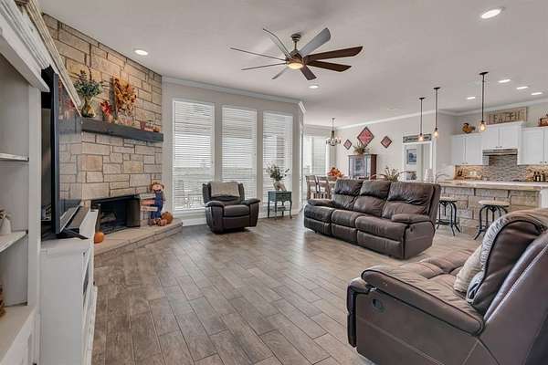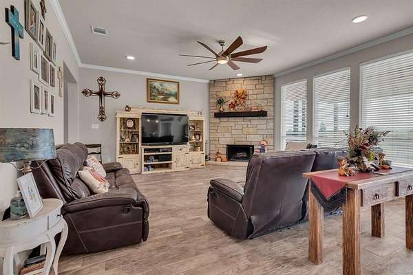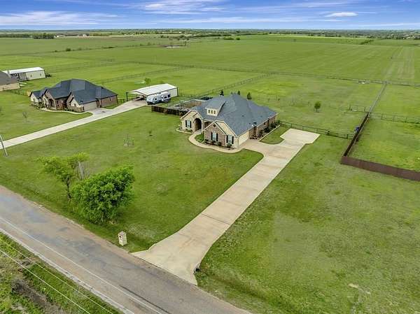Looking to enjoy the peaceful country but also have a quick commute to the city then this is for you! Beautiful 4 bedroom, 3 bath home on 2 acres in Rio Vista ISD! From the moment you enter the home you will be welcomed by a beautiful open entryway with a luxury office space to your right with custom built in solid wood shelves. This great flex space can be used as an office, formal dining area, 4th bedroom, etc., options are endless! There is not a detail unnoticed in this home from the open concept floor plan, large living room with stone covered fireplace, bright and spacious kitchen, large bedrooms with walk in closets, master bath retreat that offers separate tub, shower and a double sink, oversized washer and dryer area with an extra space that could be used as a craft room and so much more!! Out back you will find a custom built covered back patio area great for family get togethers. With 2 acres of fully fenced space you could easily put in a future pool or a large shop. There have been trees planted and there is a custom garden area that will stay. Welcome home!