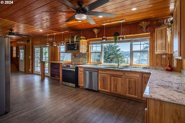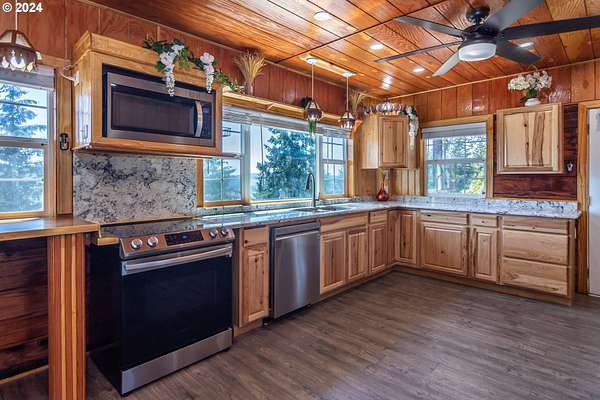 Est $2,297/moHere is your private Oregon mountain top getaway! Come experience a quiet and peaceful setting with gorgeous evergreens swaying gently in the breeze, and spectacular views from the windows and decks. This beautiful, entirely wood interior and exterior home features many upgrades including an impressive new granite kitchen, 3 large bedrooms and 3 quality bathrooms. Each and every room has built-ins, large windows and wonderful views. Explore the private park-like forest right outside your door. Host your visiting friends with full RV hookups. Call to explore this unique opportunity.