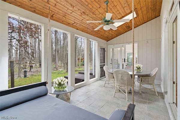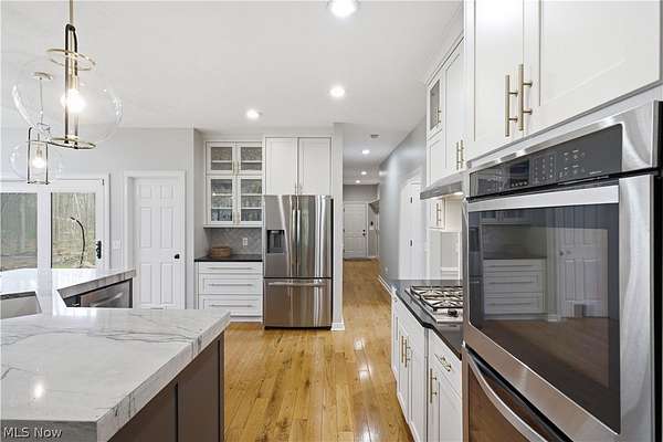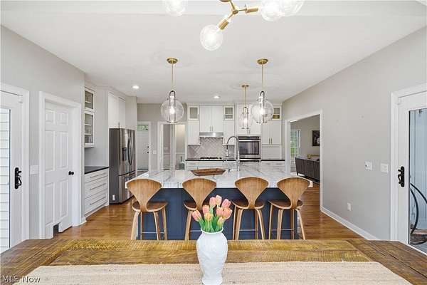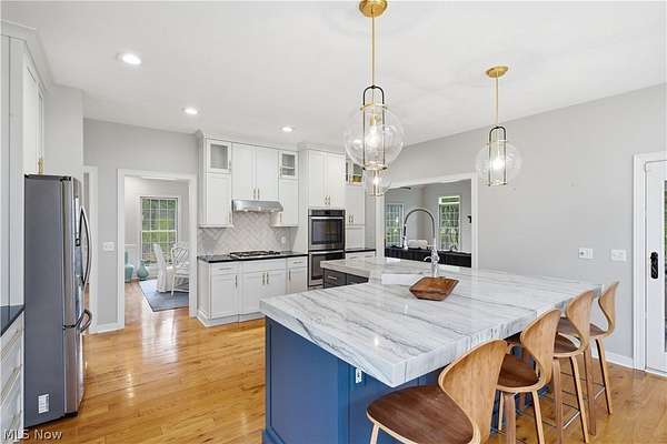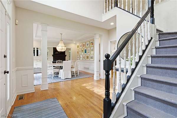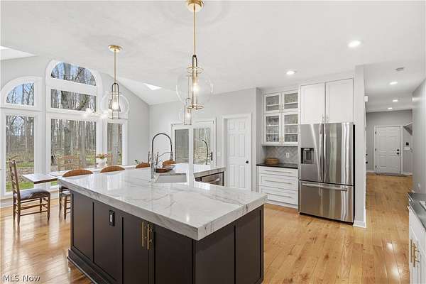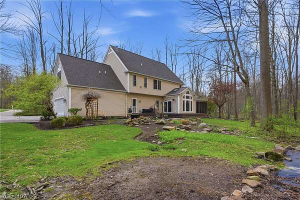 Tucked quietly at the end of a private cul-de-sac, this stunning colonial offers the perfect blend of elegance, comfort, and modern updates all within the award winning Kenston school district. A welcoming front walkway leads to a dramatic two-story foyer. A beautifully positioned home office with custom built-ins provides both functionality and style, while the formal dining room showcases exquisite millwork and picturesque views of the front grounds. The expansive family room is truly the heart of the home, featuring soaring ceilings, a striking gas fireplace with a custom, ceiling-height surround in a distinctive hue, and oversized windows that fill the space with natural light. French doors open seamlessly to a screened-in porch. The completely renovated kitchen is both sophisticated and inviting, anchored by a substantial stone island and complemented by new fixtures, stainless steel appliances, and a generous walk-in pantry. The adjoining eat-in area offers sweeping views of the backyard, making it the perfect place to gather. A stylishly updated half bath w new wallpaper, new fixtures, and vanity, along with a convenient first-floor laundry room, complete the main level. Upstairs, the serene primary suite offers a private retreat including dual walk-in closets with custom built-ins, and a versatile adjoining space ideal for a sitting room, dressing area, or flex use. The luxurious en-suite bath features a soaking tub, separate shower, and dual vanities. Two additional well-sized bedrooms share a Jack-and-Jill bath, providing both comfort and convenience. The lower level expands the home's living space complete with an additional bedroom and full bath-perfect for guests or extended stays. Outdoor living shines in the warmer months, with a beautifully landscaped backyard featuring a brick patio, tranquil water feature, and ample space to relax or entertain. This is a rare opportunity to own a truly exceptional home in one of the area's most desirable locations.