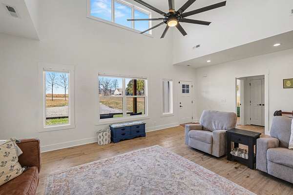 If you've been searching for privacy and space just outside of town, this is the one! This beautiful home is only two years old and sits on 5 private acres in Christiana, offering the perfect blend of peaceful country living with convenient access to town. Enjoy quiet mornings on the front porch or relax on the covered back patio overlooking the expansive backyard. Inside, you'll love the open floor plan designed for both everyday living and entertaining, featuring soaring vaulted ceilings, abundant natural light, granite countertops, and a spacious pantry. All 3 bedrooms are conveniently located on the main level. Additional features include custom closets with wood shelving, cordless shades throughout, a gas water heater, and a storage building in the backyard. With modern finishes, thoughtful upgrades, and plenty of room to spread out, this property offers peace and quiet just minutes from town.
