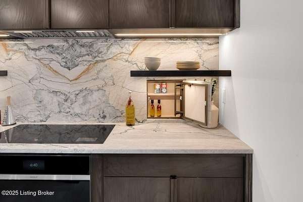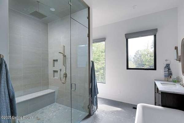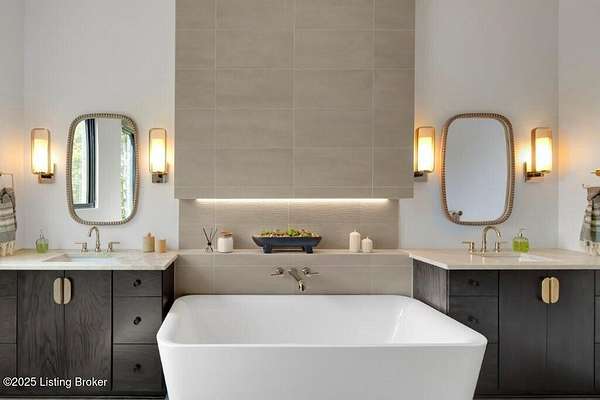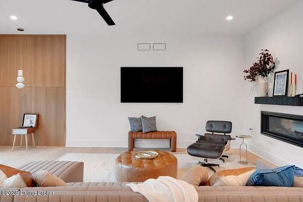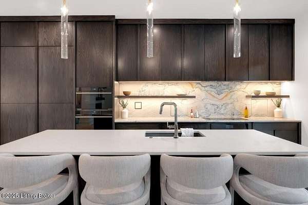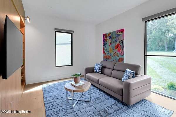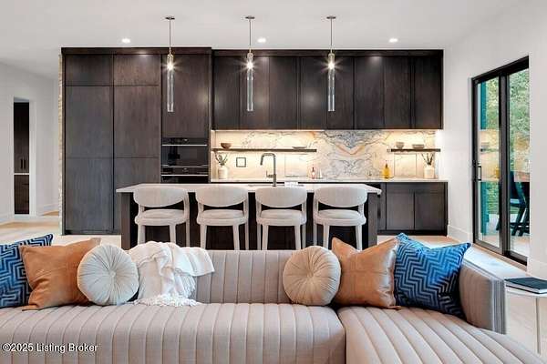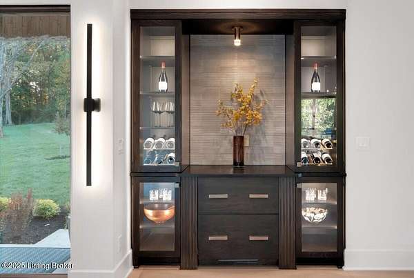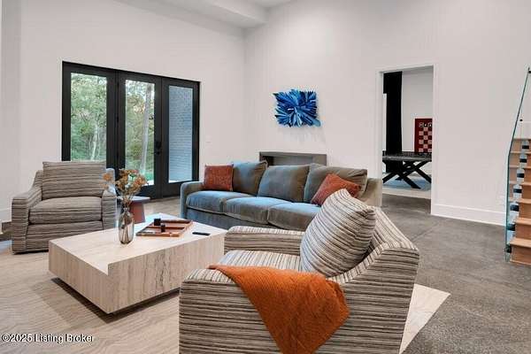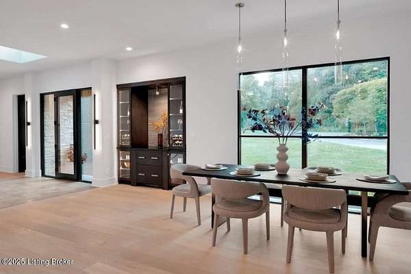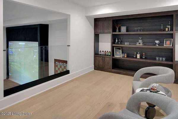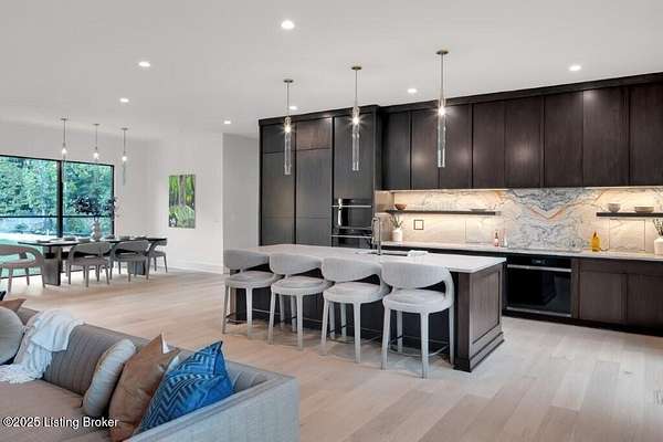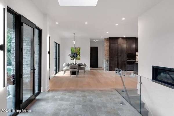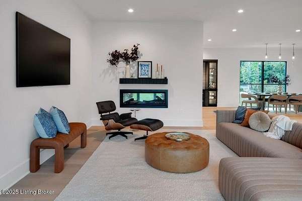 Featured in the 2025 HOMEARAMA showcase by Eldridge Company Builders, this award winning, exceptional residence defines the pinnacle of bold luxury design and contemporary living. Perfectly sited on a wooded 2.49-acre lot at the end of a quiet cul-de-sac, the home blends sophisticated architecture with a serene natural backdrop. Every element has been crafted with precision, featuring only the finest finishes, fixtures, and appliances throughout. Inside, a bright, open floor plan welcomes you with artful composition and a sense of balance. Sophistication meets exceptional livability in this bold modern design, where warm textures and sleek lines create a harmonious aesthetic. A striking dual-sided fireplace anchors the expansive living and dining areas, setting an elegant yet inviting tone. The chef's kitchen is a true centerpiece, outfitted with custom Amish cabinetry and Sub-Zero, Wolf, and Cove appliances, perfectly blending performance and design for culinary excellence. The main-level primary suite offers a private sanctuary with serene wooded views, while the upper level features 3 additional bedroomsincluding a spacious ensuite and 2 bonus bedrooms sharing a full bathdesigned with comfort and flexibility in mind. On the walkout lower level, soaring ceilings and a dramatic custom liquor display highlight a stylish retreat that includes a family room, game area with golf simulatorideal for entertaining or relaxation. Seamless transitions to the outdoor living spacesa large upper-level deck and a lower-level patioinvite enjoyment of the tranquil, tree-lined surroundings. From the white oak stair screen wall to the maintenance-free NewTechWood siding, every detail has been thoughtfully curated to balance modern elegance with enduring function. Completing the home is a spacious three-car attached garagea final touch of convenience to this statement of contemporary luxury.