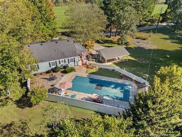 Welcome to your own private retreat! This beautiful property sits on 2 ACRES of land perfect for enjoying time with family, hosting gatherings, or simply relaxing and soaking in the peaceful surroundings. With A COVERED PORCH, you can start your mornings with a cup of coffee while watching the sunrise, and end your evenings with stunning sunset views. The IN-GROUND SWIMMING POOL and BASKETBALL COURT provide exceptional summer activities. A UTILITY SHED adds practical storage space for tools, lawn equipment, or hobbies, keeping your property ORGANIZED and FUNCTIONAL.
