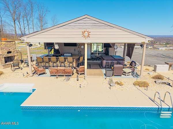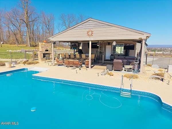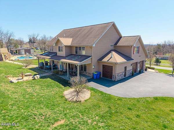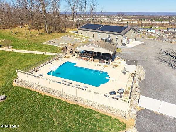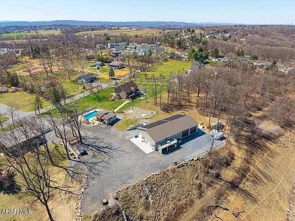 This exceptional estate, built in 2009 by renowned builders DNM Contracting INC and Acclaim Restoration, offers an unparalleled combination of luxury, comfort, and sustainability. With 4000 square feet of meticulously designed living space in the main house 5 bedrooms, 4.5 baths and an additional 1,500 square feet of finished space in the basement, this home is both spacious and thoughtfully appointed. Inside, the basement is a true entertainer's dream, featuring a full kitchen, a 24-foot bar, and not one, but two home theaters for the ultimate cinematic experience. A fully-equipped gun room, constructed with 12-inch concrete walls on all six sides, ensures the highest level of security. A wine cellar and a four-person sauna add even more luxury to the space. The main house offers four generously sized bedrooms, along with the possibility a fifth bedroom, 4 full bathrooms and one half-bath. A new HVAC energy efficiency system with ready geothermal featuring solar panels on the accessory building. All closets are illuminated for added convenience. Set on 3 acres, the property boasts breathtaking views and is designed to impress. A three-car garage provides ample storage, while outside, you'll find a 20 x 40+ shaped inground swimming pool, a hot tub, and an outdoor kitchen and bar perfect for entertaining. The detached pool house features a full bathroom, a brick fireplace, and a pizza oven, making it an ideal retreat. For the enthusiast or professional, the property includes a 30 x 50 garage with 13-foot ceilings, a 12 x 12 garage door, and a 12,000-pound Titan lift. This mechanic's dream garage is equipped with a pellet stove, electricity, water, and its own kitchen. Additionally, it features a 16 x 50 lean-to for extra storage. The remarkable 7,500 square-foot building with16-foot high ceilings, you'll find 1,500 square feet of living space, including a kitchen, a bath and a half, a full walk-in shower, and space set up for a bedroom, large living room, and office-perfect for a guest suite, business operations, or an Air B&B income producing space. The building offers generous storage and access through a 12 x 12 garage door and an 8 x 7 door for easy entry. Additionally, a 50 x 50 area with 16-foot ceilings and two 16 x 14 doors provides ample space for RVs, boats, or other large equipment. This area is conditioned with efficient gas heat for year-round comfort. This stunning property is also newly installed, fully solar-powered, ensuring a sustainable and eco-friendly lifestyle. Conveniently located just 6 miles from Harrisburg and 4 miles from Hershey, this estate offers a peaceful country setting with easy access to both cities, allowing you to enjoy the best of both worlds-seclusion and convenience. Wildlife enthusiasts will appreciate the natural beauty that surrounds the property, with plenty of wildlife passing through regularly. From its energy-efficient features to its luxurious amenities, this home is the epitome of modern living.