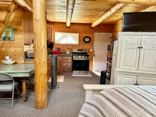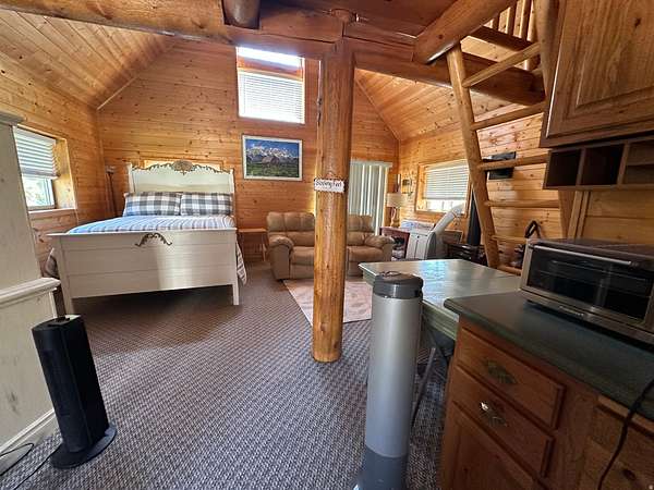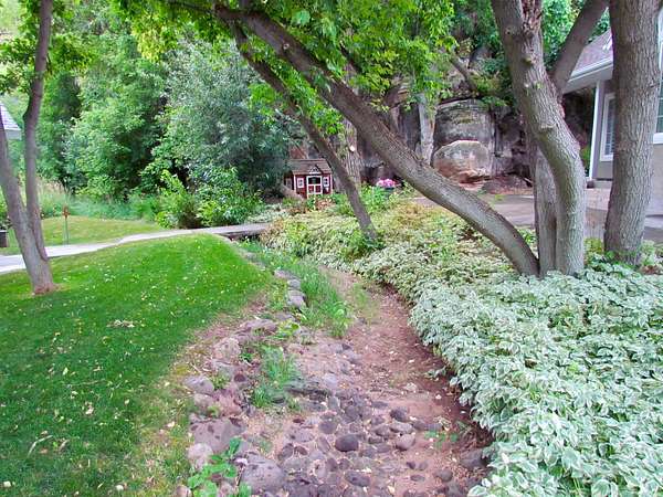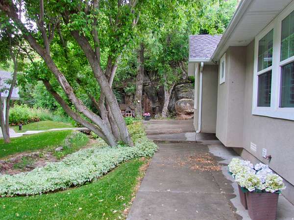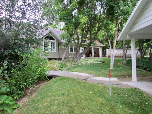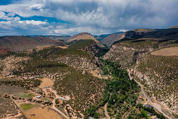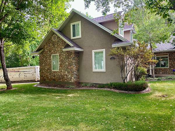 Gorgeous home up Dry Fork Canyon. 4 bdrm, 2 bath. Has an office with built in work space that could also be used as a bedroom. Open kitchen. Granite countertops. Tile & carpet throughout the home. The kitchen has in floor electric radiant heating. Surrounded by trees, and a stream runs through the property. Three 1,000 gallon propane tanks. Also, a propane generator hooked up in case of power outage. Beautiful landscaping with auto sprinkling system. 2 car attached garage, along with a 2 car detached garage, a 1 car detached garage, and a 30'x40' 2 space RV garage with an 8' wide cold storage room and work space in the rear of it. Doors are 12' wide & 13.5' tall. Power runs to all of the garages. There is also a 1 bedroom 1 bath cabin on the property. It has a private balcony. Peace & beauty abound on this beautiful place!