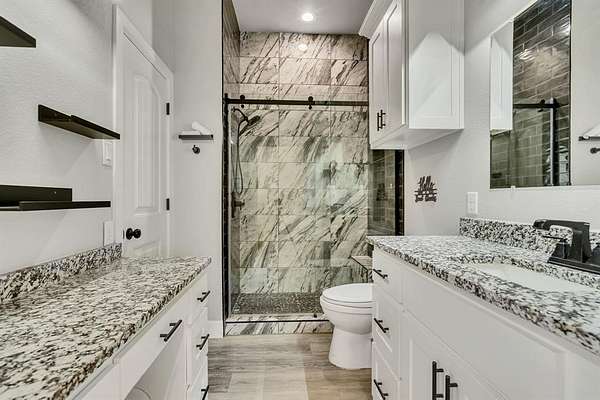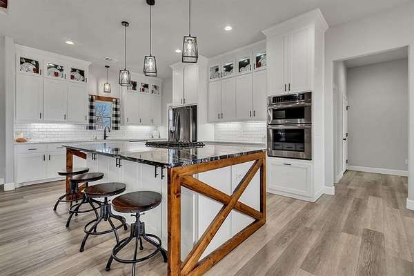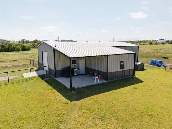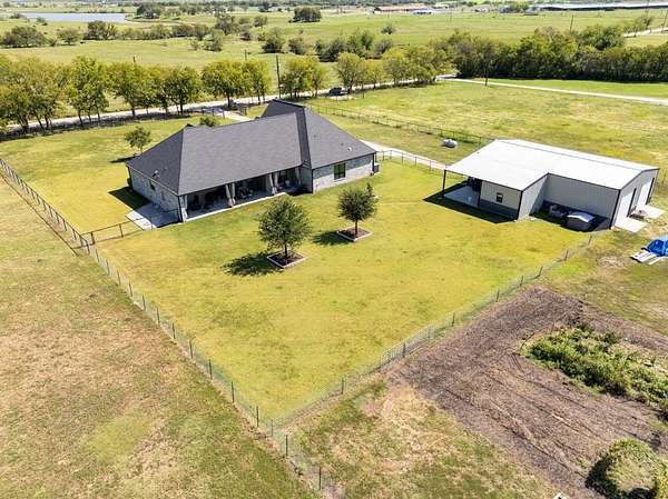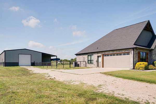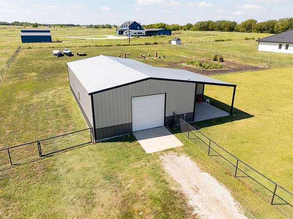 Welcome to peaceful country living situated on 2 acres. This thoughtfully designed home blends modern construction with functional acreage living. Featuring three spacious bedrooms, plus a dedicated office. The smart split-bedroom layout provides privacy and flexibility for today's lifestyle. The primary suite offers a private ensuite bath. One secondary bedroom also includes its own ensuite bath, creating the perfect setup for a mother-in-law suite, private guest quarters, or multigenerational living. The heart of the home is the expansive kitchen, anchored by a large island and enhanced with numerous organizational upgrades designed for the savvy chef. All appliances in the kitchen are included. A huge walk-through pantry offers exceptional storage and seamless access from the garage entrance or kitchen. Includes a sink, dedicated pull out for an ice machine, space for 2 refrigerators or freezers. The home includes a side-entry two-car garage, single door, with a storm safe room for added safety and peace of mind. Outdoors, you will find pipe fencing and then no climb wire fencing separating the backyard front from back. The front entry gate that is pipe, for added privacy and security. A sprinkler system services the front, backyard and side yard. Two sprinklers in the back half of the backyard are fed thru the septic system. The well house protects the 485' deep well. A standout feature is the fully insulated workshop, complete with a half bath. The front of the outbuilding has a single door and the back offers two doors for additional parking, tractor storage, equipment, or hobby space. The home is serviced by an efficient aerobic septic system designed for acreage properties. See docs section for more highlights. Close to I-35W, Krum town center, Denton, UNT and more. Just 25 minutes North of Corinth and about 40 minutes North of Lewisville. Information herein deemed reliable. Buyers and Agents should verify taxes, sf, schools and use due diligence.