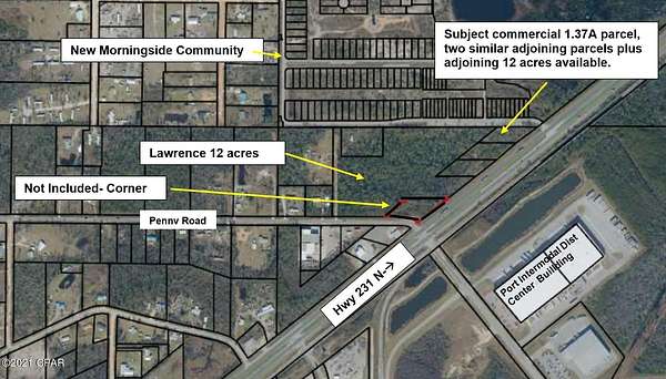 Outstanding corner across from the intermodal distribution center on Hwy 231 at the corner of Morningside Drive, NEW residential subdivision. Traffic County 27,500 AADT and growing! This is one of three parcels of equal size adjoining, totaling 600 feet and 4.1 acres available. Owner has cleared, added fill to make the property shovel ready. County GIS shows elevation 55-60 feet above sea level. Exactly 10 miles from intersection of Hwy 231 and Hwy 77 in a rapidly growing area just north of Hwy 231 6-LANE planned enhancement project. Another 12.4 acres can be added to these outstanding sites on the fringe of new industrial development!
