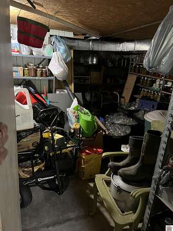 This beautiful 5 bedroom 2 bathroom home is nestled on 4.25 acres of serene flat, rolling, and partially wooded land. Part of the land is fenced with five strand bobbed wire to keep cattle in if the buyer decides to have cattle. The house is 3431 sq ft., and is a story and a half above grade with a finished basement. The main level consists of the eat-in-kitchen, living room with fireplace, two large bedrooms and a bathroom. There are two large bedrooms upstairs. The basement is finished and has a living room, kitchen bathroom, bathroom, laundry room, storage room and exit to the yard. There is a red barn and two other buildings on the land.