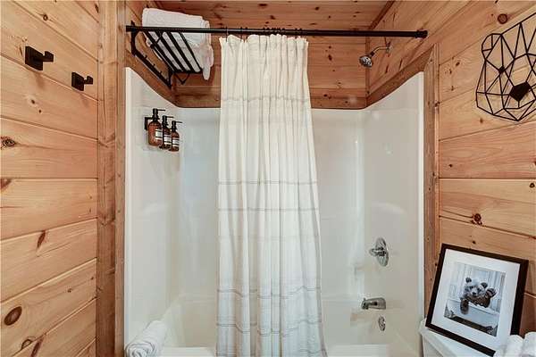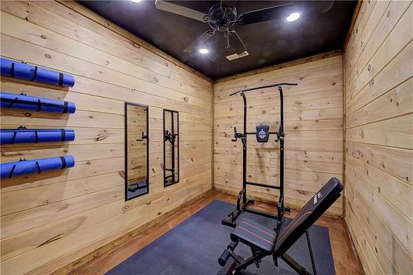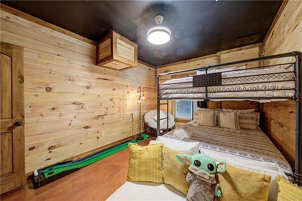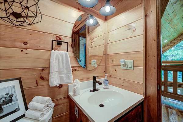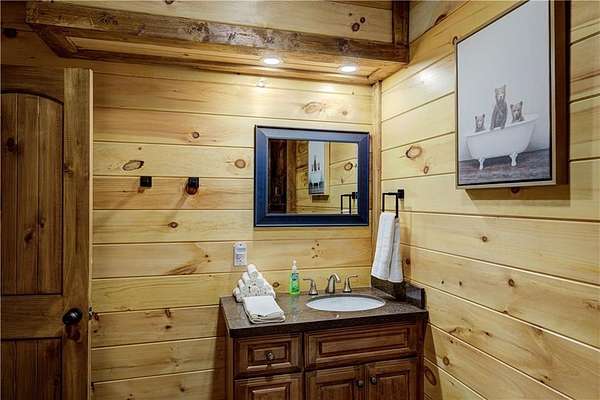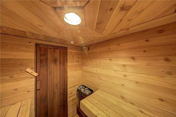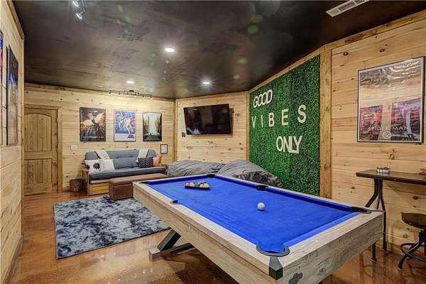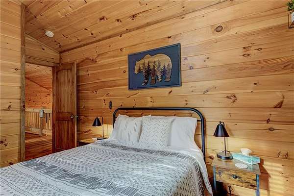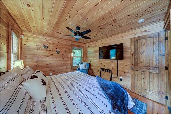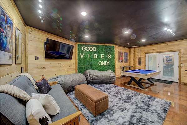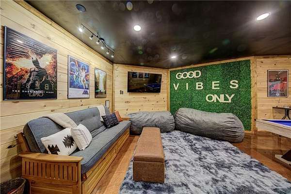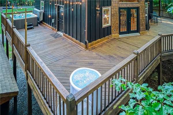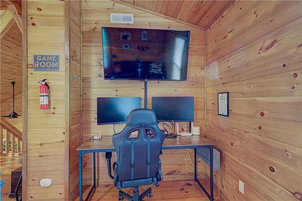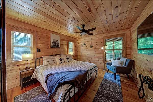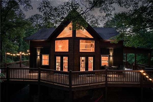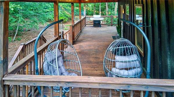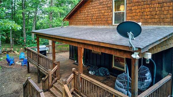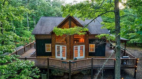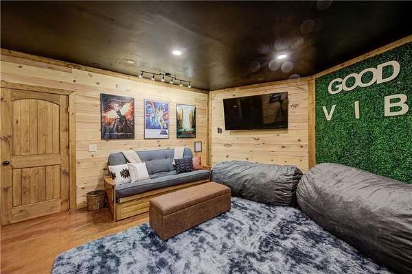 Escape to the mountains at BearLux Lodge, a beautifully furnished 3-story log-sided cabin tucked into 3.12 private wooded acres just minutes from historic downtown Blue Ridge. Designed for entertaining and relaxation, this spacious home accommodates large groups comfortably with multiple gathering areas, three full baths, and sleeping space for ten or more people. Inside, the home combines industrial-boho design with rustic warmth-featuring rich wood interiors, iron and mid-century accents, and an open layout across all three levels. The main level offers a welcoming great room with stone fireplace, large windows overlooking the forest, a modern kitchen with center island, and access to the wrap-around deck. The upper level includes a private loft bedroom suite plus an office area with dual-monitor workstation ideal for remote work or gaming. The terrace level adds a family-friendly bedroom with queen bunk and trundle, a recreation room with pool table and foosball, and direct patio access. Outdoor living is equally impressive-relax in the open-air hot tub, unwind in the Swedish dry sauna, or gather around the firepit beneath the trees. The 3/4 wrap-around deck includes both covered and open areas, perfect for dining or stargazing. A mini-gym and a storage shed provide extra convenience, while a circular driveway offers ample parking, including space for an oversized RV. Additional highlights include a tankless water heater for endless hot showers, high-speed 5G internet, satellite/cable-ready TVs, and central HVAC. The property is serviced by private well and septic with paved county-maintained road access. Whether used as a full-time residence, private vacation home, or income-producing short-term rental, BearLux Lodge delivers flexibility and mountain lifestyle appeal. No HOA or rental restrictions. Property Features: - 3 finished stories, 3 bedrooms, 3 full baths - Approx. 2,590 SF, including 1,017 SF basement - 3.12 ac wooded lot - private and usable land - Open great room | Kitchen island | Hot tub | Sauna | Rec room - Well & septic | Tankless heater | Central HVAC | 5G internet - Wrap-around deck | Firepit | Storage shed | RV parking - No HOA | STR permitted | Owner/Agent This is mountain living at its finest-private, turnkey, and move-in ready.