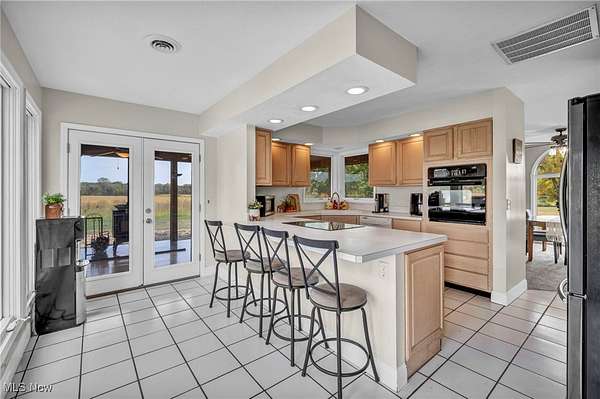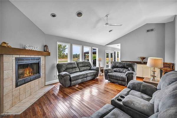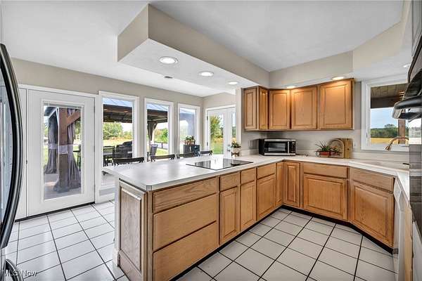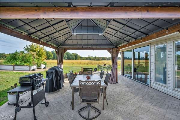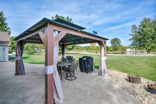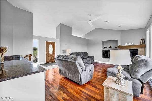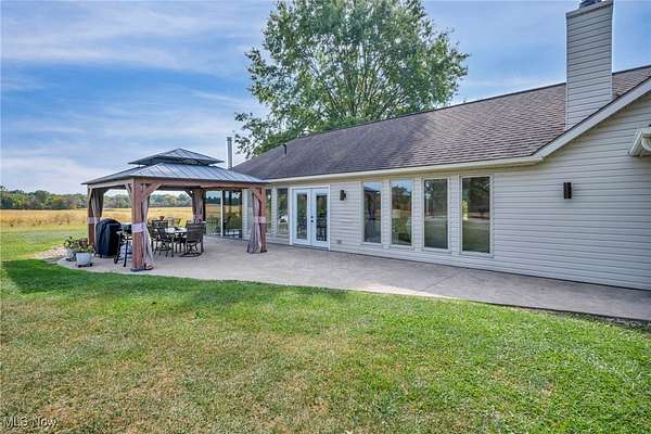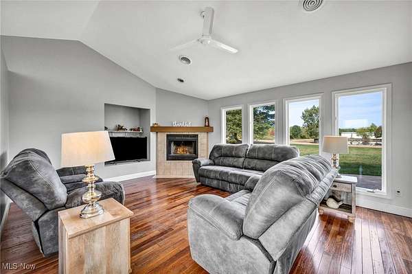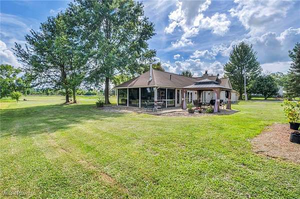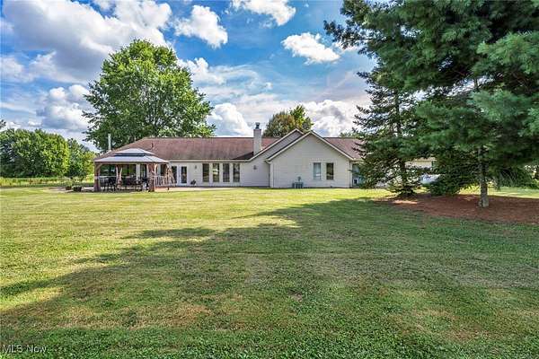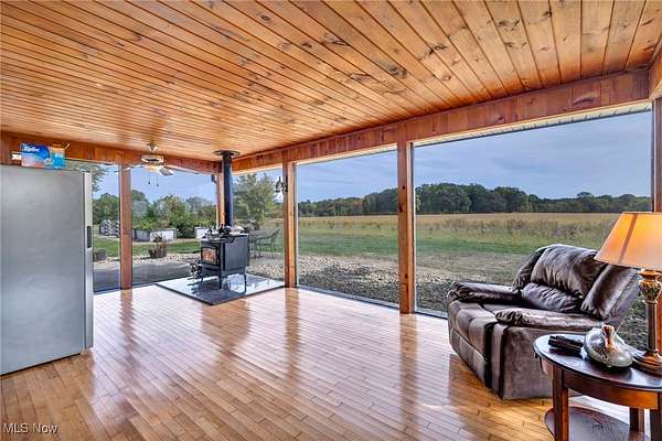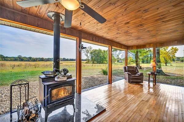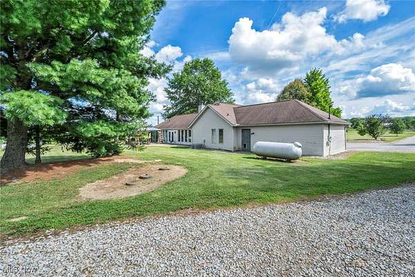 Come home to peace, privacy, and endless possibilities! Spread across 5 sun-soaked acres, this ranch-style home offers tranquil views, fishing at your own pond, and plenty of space to breathe. Inside, 2,002 sq. ft. of light-filled living space welcomes you with gleaming hardwood floors that lead to an open living room featuring a warm, inviting fireplace. A bright three-season room brings the outdoors in, letting you enjoy every moment surrounded by nature. Step outside to towering trees that provide soothing shade, or wander through a field of sunflowers that creates a magical backdrop for photos, relaxation, or simply soaking in the scenery. The updated kitchen shines with new appliances, a peninsula bar with seating for four, and ample cabinet space-perfect for weekday meals or weekend entertaining. Three bedrooms and three updated bathrooms offer comfort for every member of the household. For hobbyists or dreamers, a massive 40x60 steel barn with a cement floor is ready for projects or storage, while a 2.5-car garage adds space for ATVs, equipment, or extra vehicles. The home includes a cistern with a water treatment system, yet natural gas and city water are available at the street for added flexibility. All of this is just minutes from Medina's shops, dining, and schools, offering the perfect balance of privacy and accessibility for everyday life. Your country dream starts here!