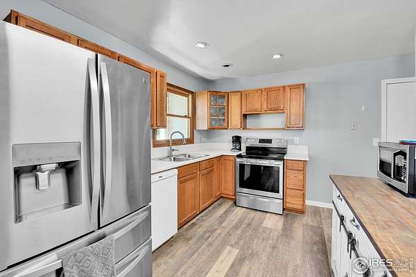 3D virtual tour can be seen on HOMES. com. Charming Farmhouse with Full Mountain Views on 9 Acres- Bring Your Animals With a Fort Lupton address yet located right on the boundary of Firestone, this picturesque farmhouse offers the perfect blend of peaceful country living and modern convenience. Nestled on approximately nine acres, the property boasts sweeping, unobstructed mountain views and endless possibilities for hobbies, livestock, or future expansion.Inside, the home is quaint yet functional, featuring a main floor bedroom and bathroom, in addition to a spacious upper-level primary suite and an additional small bedroom currently used as a loft/sitting area-ideal for a home office, nursery, or creative space. A full crawl space provides extra storage below the main living space. Two impressive shops enhance the property's appeal: one approximately 2,400 sq. ft. with lights, heat, and a dirt floor-perfect for use as an indoor arena-and another 24x52 structure with a concrete floor, water hookups, and heating capability. Already connected to District water (no well!), additional water and electric lines have already been pulled to a location designated for a previously planned ADU, giving the next owner a head start on creating multi-generational living or rental income potential. Recent upgrades include a Class IV impact-resistant roof, a brand-new A/C unit, and a newer furnace, ensuring comfort and peace of mind for years to come. Whether you're looking for a serene retreat, a functional hobby farm, or a property with income potential, this rare offering is ready to welcome its next chapter.