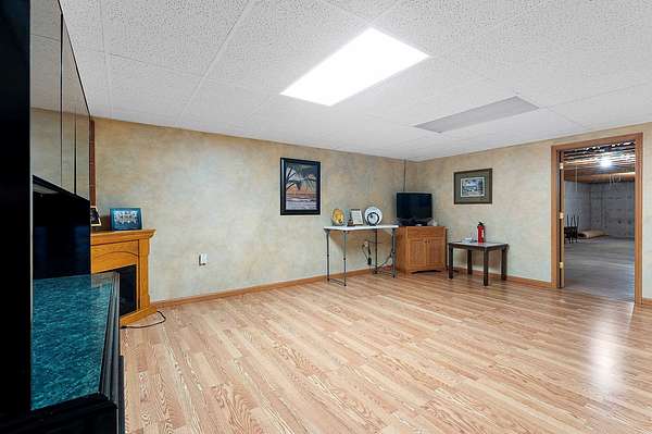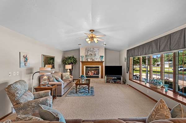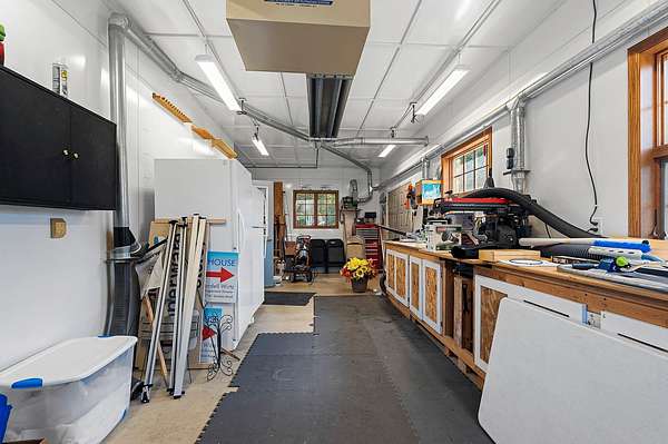 Motivated Seller! This immaculate, move-in ready home on 2+ serene acres. The chef's kitchen boasts granite countertops, subway tile backsplash, island, premium finishes, endless storage and seamless flow into the dining room with built-in China-hutch and a sunlit living room. Wood floors lead to three spacious bedrooms, including a primary suite with walk-in closet. Enjoy the ease first-floor laundry, a cozy gas fireplace, and a bright sunroom. The partially finished basement adds living space, while the attached garage offers epoxy floors and a woodworking shop. A metal shingle roof ensures peace of mind. Outdoors, lush landscaping highlights a tranquil waterfall, and a 36'x40' pole building with RV-height door adds endless versatility. This home offers luxury at every turn.