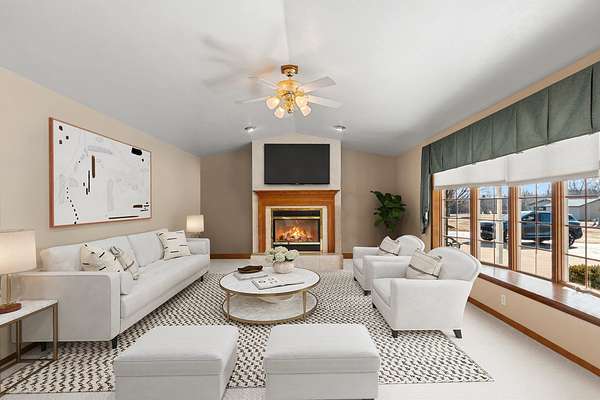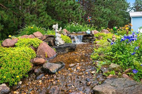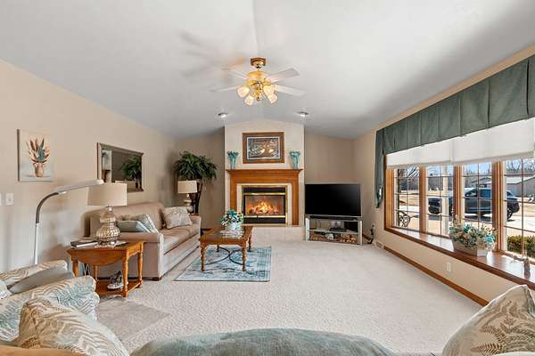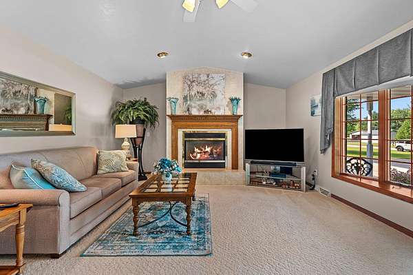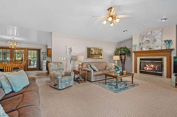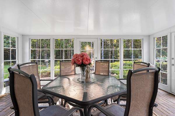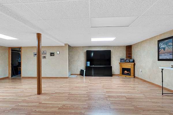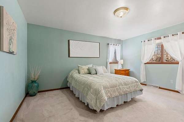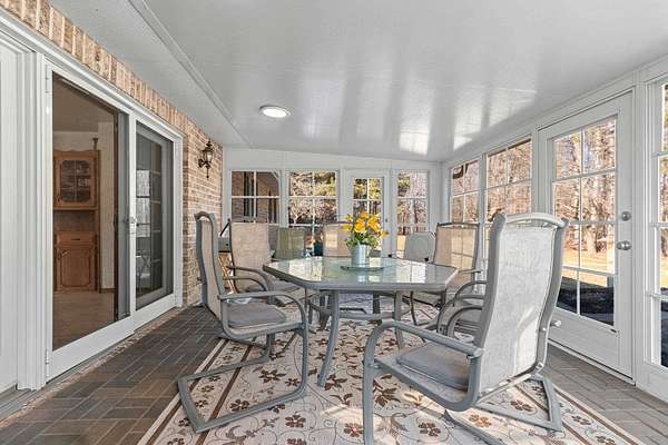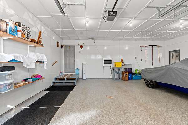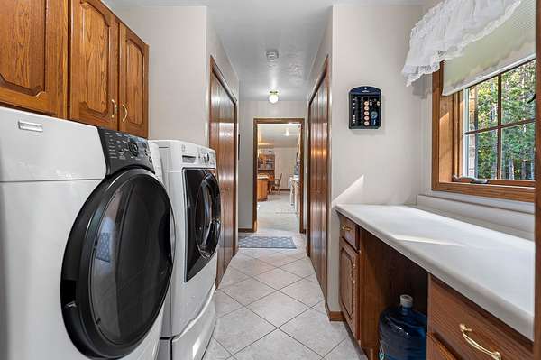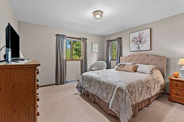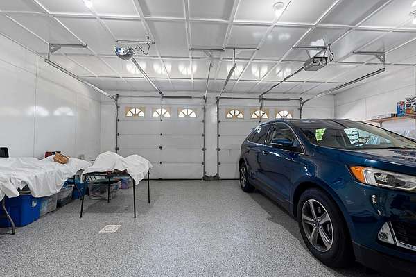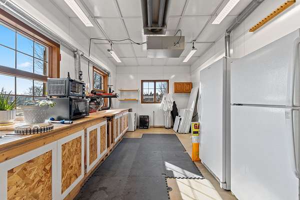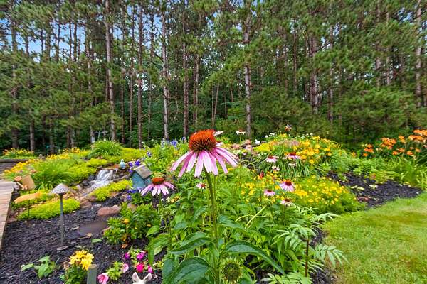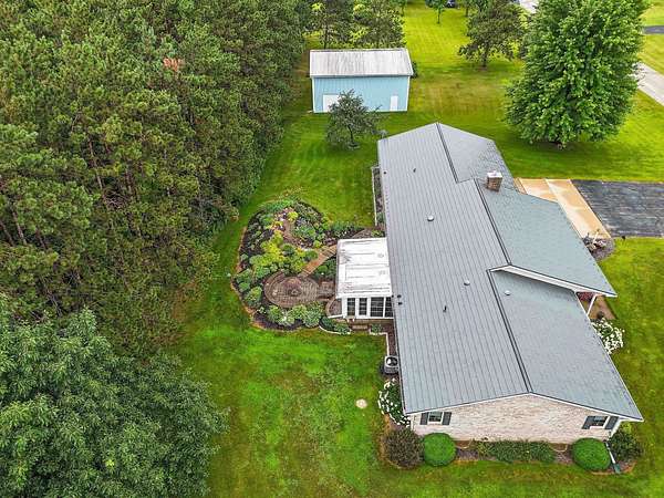 Set on just over two serene acres, this thoughtfully maintained property offers space to relax and recharge. A metal shingle roof and updated utilities provide lasting peace of mind, while the 36' x 40' pole building with RV-height doors allows exceptional flexibility. The kitchen features granite countertops, subway tile backsplash, and a central island that opens to the dining area and living room for easy flow. Wood floors lead to three bedrooms, including a primary suite with walk-in closet. A sunroom overlooks the landscaped yard and waterfall feature. Main-level laundry, a partially finished lower level, and an attached garage with epoxy flooring and workshop space complete the offering. Some images have been digitally altered.