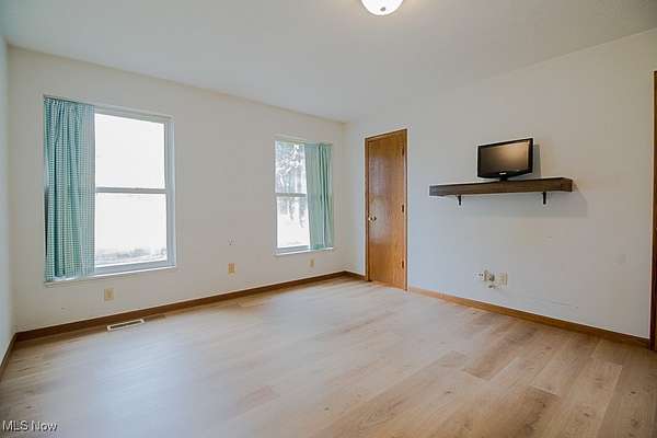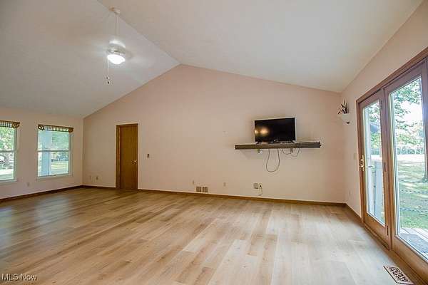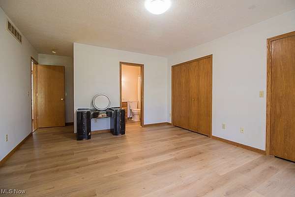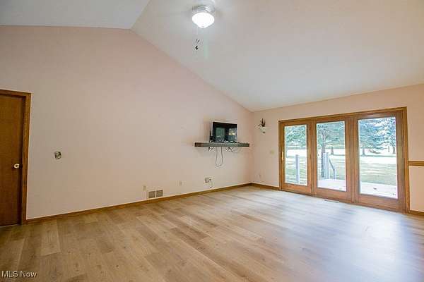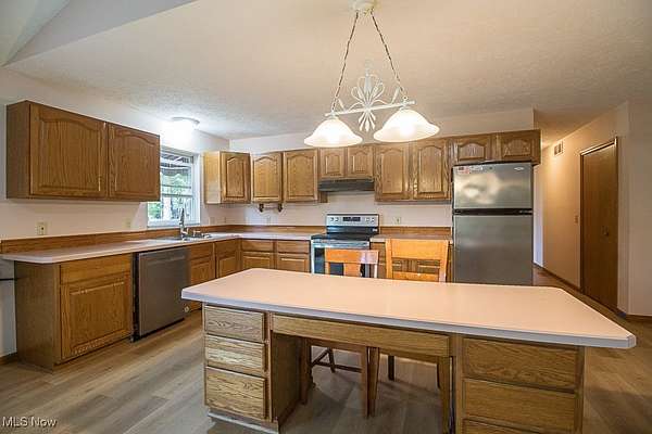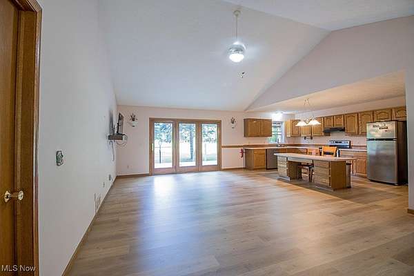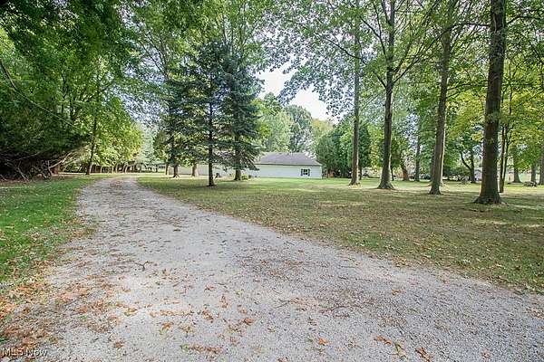 This charming two-bedroom split ranch is nestled on 3.88 acres of private land, offering a serene retreat. The property features a full basement for extra storage space and a 24 x 90 block out building with a heated workshop area, perfect for DIY projects. With 220 electric and two overhead doors, this property is ideal for those looking for a home with ample space and privacy. The vaulted family room seamlessly connects to the kitchen, featuring an island that allows for easy flow and entertaining. Natural light fills the space, highlighting the new flooring that runs throughout. Both bedrooms offer private bathroom access for added convenience. A patio door leads to a Trex deck, perfect for enjoying the peaceful, park-like yard with abundant wildlife.
