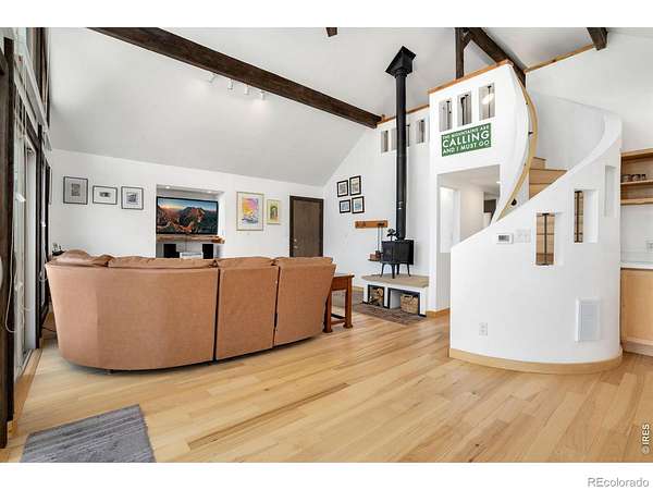 Welcome to your serene mountain retreat-where breathtaking views meet comfort & charm, offering the peaceful lifestyle you've been dreaming of. The wall of windows floods the open floor plan with light & frames panoramic views of the surrounding mountains & valley. These windows don't just bring in light-they bring the outside in! You'll enjoy feeling cozy from the warmth of the wood stove Step out onto the spacious deck to take in the fresh mountain air & the sweeping scenery all around you. Remodeled in 2021, the kitchen features solid-surface countertops, ample maple cabinetry & a layout designed for convenience. Main floor living includes 2 bedrooms, & new engineered flooring in the living room, kitchen, hallway, & laundry with fresh paint inside & out. A highlight of the home is the beautifully handcrafted corkscrew staircase, which leads to a spacious open loft, offering an ideal spot for a reading nook, home office, or guest sleeping area. Loft storage has plenty of room for extra gear, seasonal decorations, or anything you might need. Plus, there is a heated 22'x7' studio in the lower level for more extra space! As much as the indoor features impress, it's the outdoor living that truly makes this property special. The Trex-like deck offers plenty of room for dining, entertaining friends, relaxing & stargazing on clear mountain nights. A detached 2 car garage & large parking area allows for ample workspace & parking. This property is served by a private well. The land is adorned with wildflowers, pine, & rock-outcroppings, creating a private sanctuary & nature lover's delight sighting wildlife and eagles overhead. HOA provides year 'round road maintenance, 3 small fishing ponds & area hiking trails. There is a full-service restaurant/bar & horseback riding nearby. Glacier View is within 20 minutes or less from National Forests, Red Feather restaurants & stores. Don't miss this opportunity to own a slice of mountain paradise, come see it today!