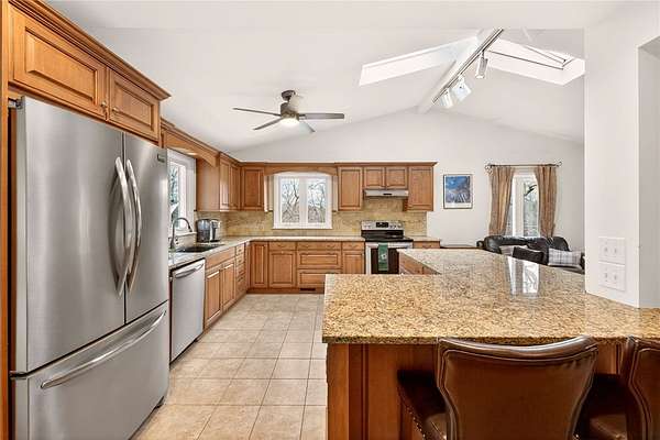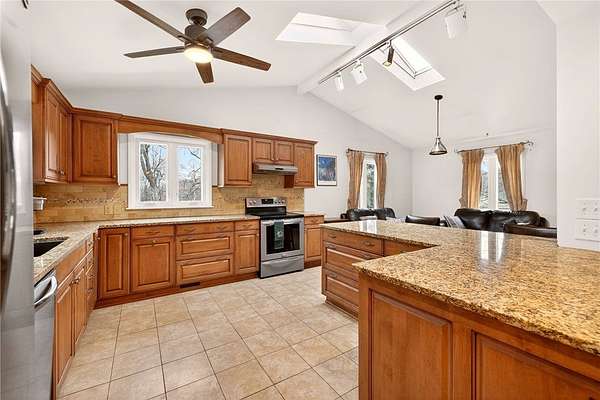 - Eat In Kitchen, Granite Counters, Home Office, Kitchen Island, Separate Formal Dining Room, Separate Formal Living Room, Skylights, Sliding Glass Doors