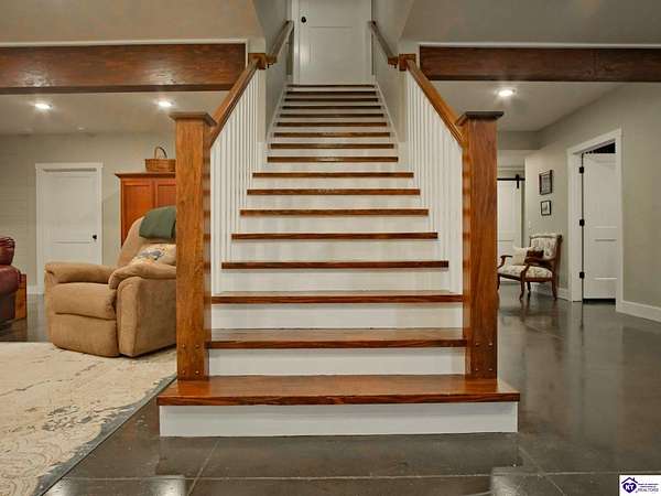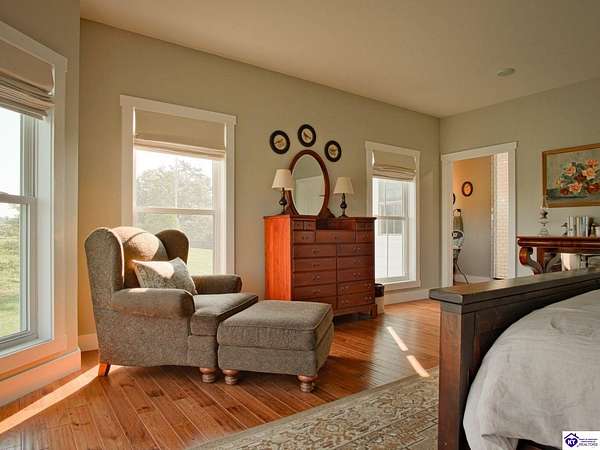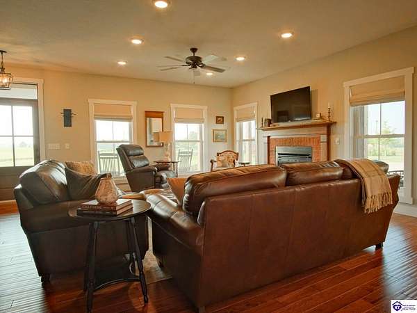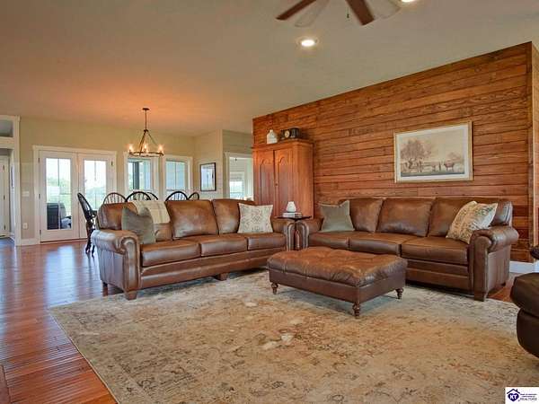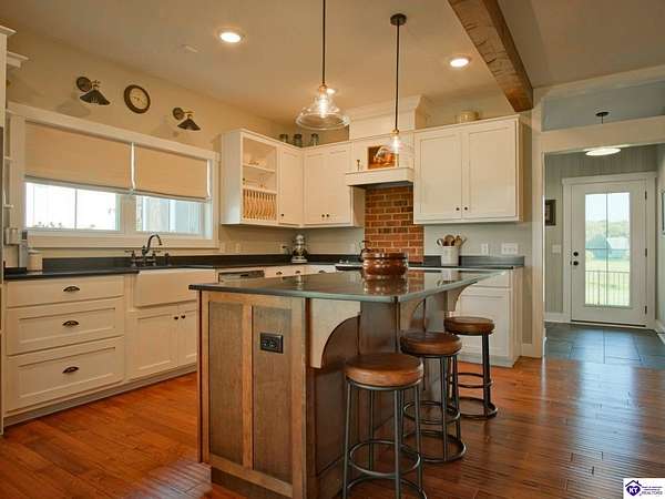 This stunning 3-bedroom, 3-bathroom home offers a luxurious lifestyle on 4 acres of peaceful, scenic land. As you step inside, you're greeted by the warmth of hickory hardwood floors and the grandeur of 9-foot ceilings that create a bright, open atmosphere. The spacious living room, centered around a charming wood-burning fireplace is perfect for cozy family gatherings. The modern kitchen, with ample space for both casual meals and entertaining, flows seamlessly into the living areas. making it ideal for hosting guests. The home also features a huge basement with stained concrete floors, offering a second living room area that's perfect for a media room, play area, or even a home office. The basement also has room for a potential additional bedroom, giving you flexibility for guests or a growing family. Outside, the covered deck and porch provide the perfect spots to enjoy your morning coffee or unwind after a long day, all while taking in the views of your expansive property. In addition to the main house, the property includes a 2-car attached garage and 2 versatile outbuildings that can be used for storage, workshops or even small business to add to the character that already flows throughout this beautiful piece of property. Whether you're looking for a peaceful retreat or a place with room to grow and create, this home offers the perfect blend of luxury, comfort, and endless possibilities. *AN ADDITIONAL 4 ADJOINING ACRES AND 2 BARNS ARE AVAILABLE TO PURCHASE IF DESIRED FOR $295,900. HOUSE AND LAND MUST SELL BEFORE ADJOINING PROPERTY CAN BE PURCHASED.*