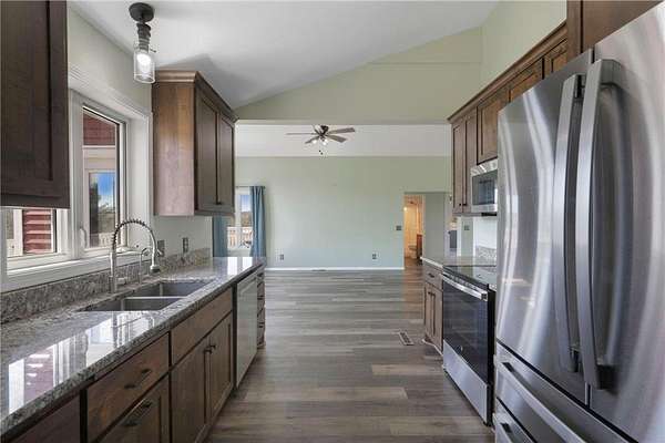 The open-concept living areas are filled with natural light and provide peaceful views of your acreage, while the spacious kitchen and dining area are ready for family meals or entertaining.