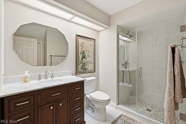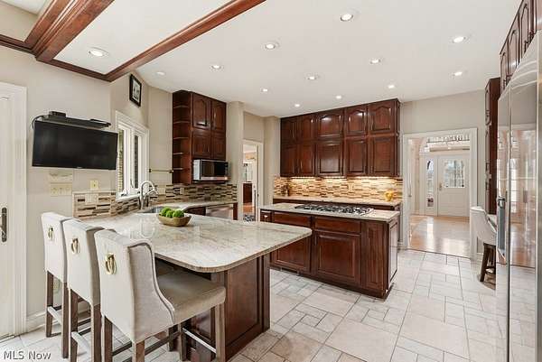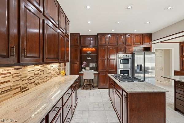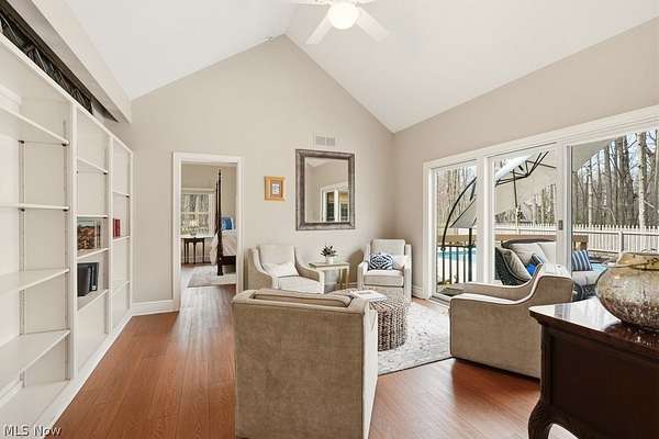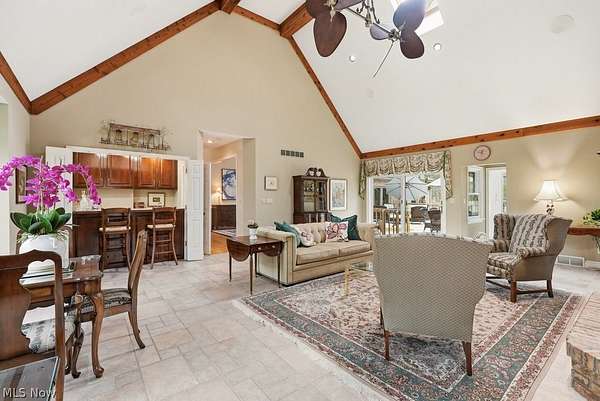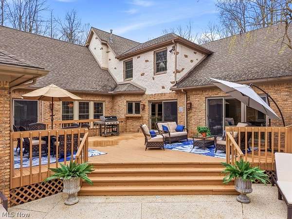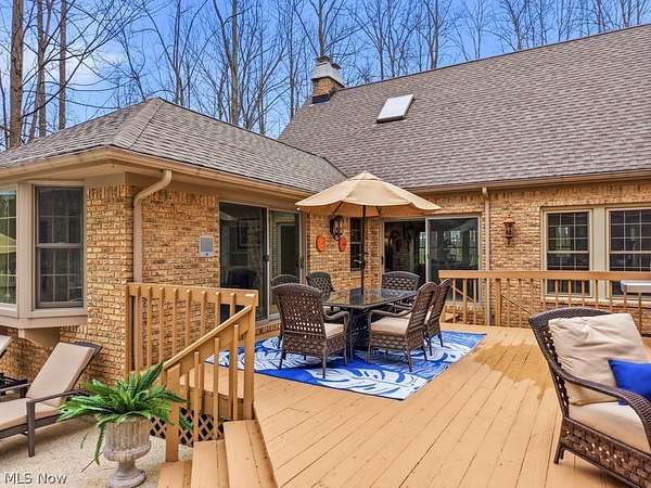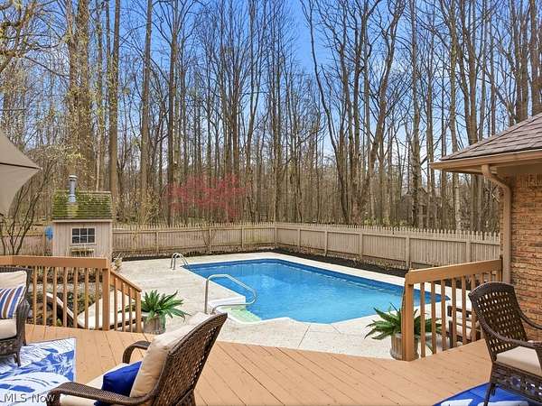 Nestled on 5.46 wooded acres, this exceptional 5 bedroom, 7 full bath home offers the perfect blend of luxury, privacy and versatility. Thoughtfully designed for both everyday living and unforgettable entertaining, the home features a desirable first floor primary suite along with a separate in-law suite complete with it's own sitting room-ideal for extended family or guests. A dramatic two story foyer welcomes you inside and opens to an expansive dining room with a gas fireplace, custom built-ins and an exquisite chandelier. The eat-in kitchen is beautifully appointed with granite countertops, stainless steel appliances, a breakfast bar, and a convenient serving bar-perfect for hosting gatherings of any size. The impressive great room serves as the heart of the home, showcasing vaulted ceilings and an incredible wet bar, creating a true entertainer's dream space. Just steps away, a Florida room and dedicated changing bath provide seamless access for poolside enjoyment and effortless indoor-outdoor living. A private office and a convenient first floor laundry complete the first floor. Upstairs, you'll find three generously sized bedrooms, each with direct access to one of two full baths, offering comfort and privacy for family and guests alike. The finished lower level features two separate recreation areas, a bar, a full bath, a storage room, a workshop and walk out/up access to the deck and pool area. This home has been well maintained with many updates throughout. Located in the award winning Kenston School District and ideally situated near parks, shopping, and dining, with easy freeway access and just minutes to the Village of Chagrin Falls. Geauga County taxes and no RITA! See supplements or contact agent for a list of improvements.