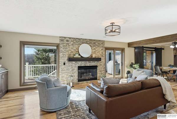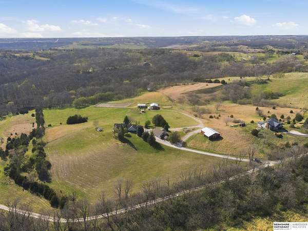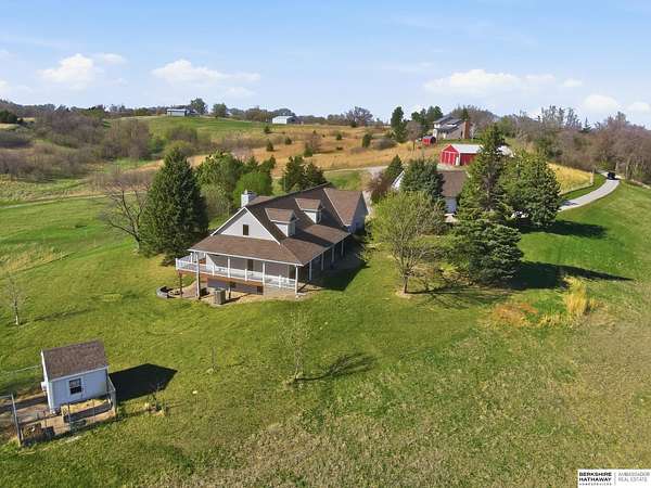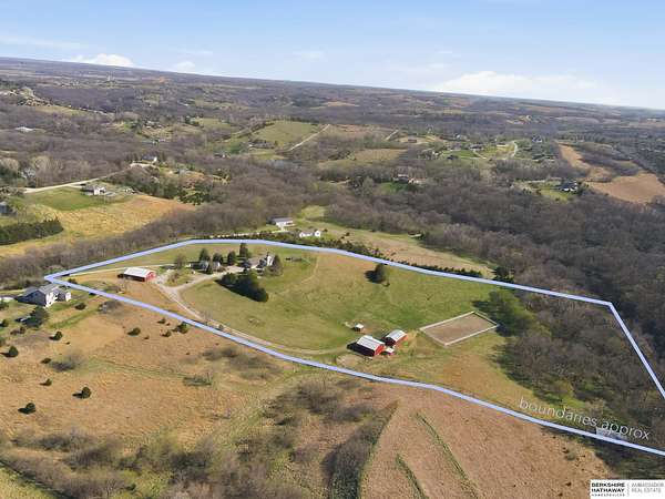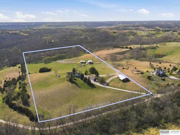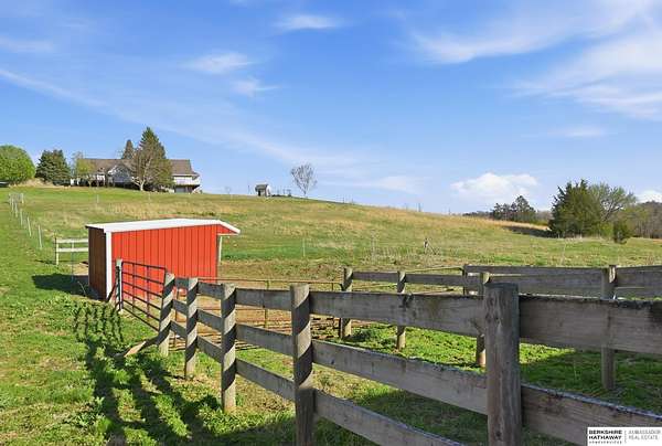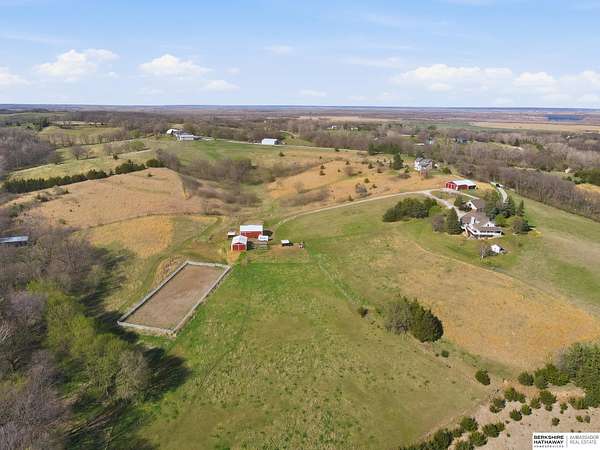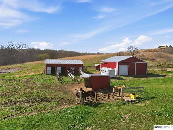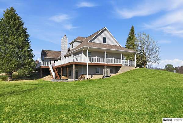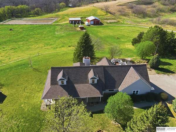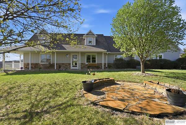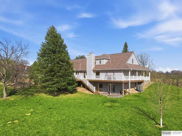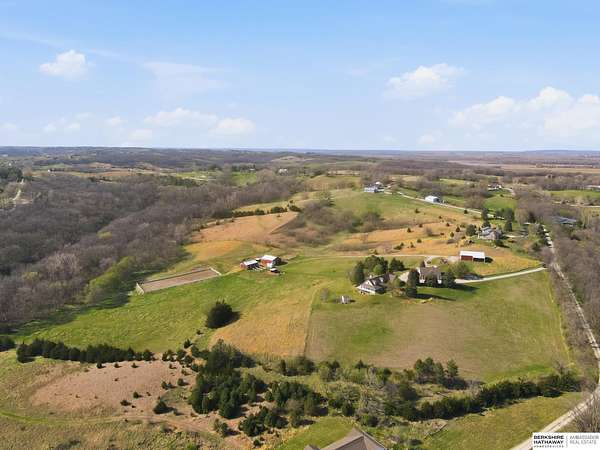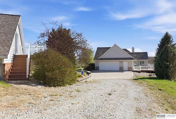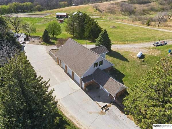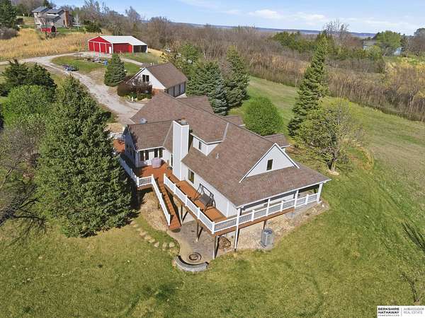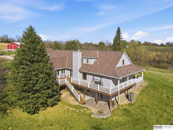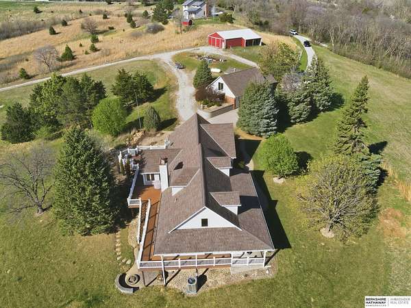 Britney Boltinghouse, M: 402-957-4481, britney.boltinghouse@bhhsamb.com, https://www.bhhsamb.com - Situated on 18 acres of premium, private acreage, this property offers a rare opportunity combining space, functionality, and beautiful updates throughout. Designed for both everyday living and entertaining, this walkout ranch features a main-floor primary suite, main-floor laundry, and a thoughtfully designed layout. The gourmet kitchen and updated bathrooms showcase quality finishes, while custom closets add convenience. The walkout lower level offers expansive living space with a large rec area, separate entertaining zones, and a dedicated workout room. Step outside to take in breathtaking views for miles, complete with a wraparound porch and deck, mature landscaping, and a waterfall feature overlooking a fire pit perfect for relaxing or hosting. The additional detached 3-car garage includes a finished loft above with a kitchenette, bath, living area, and bedroom ideal for guests, hobb