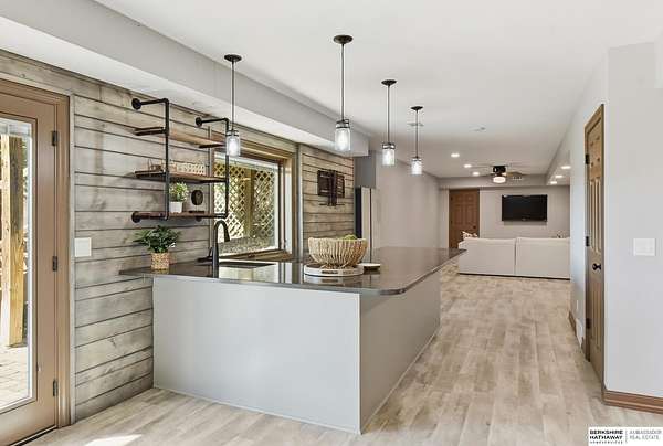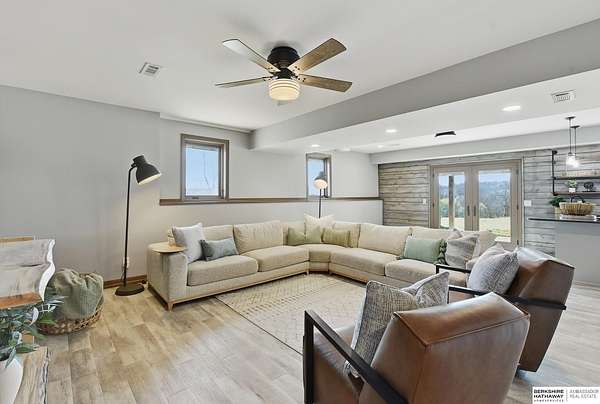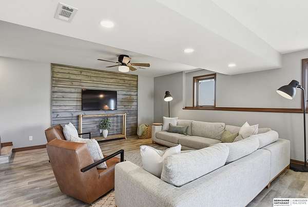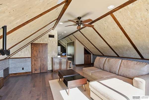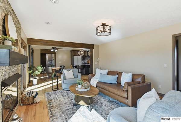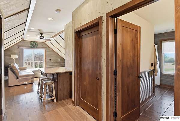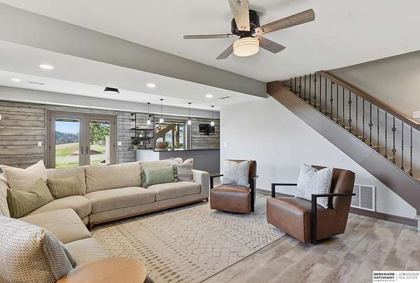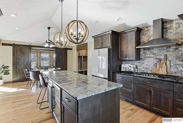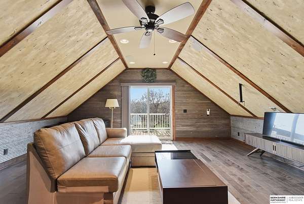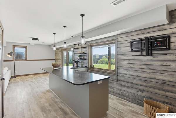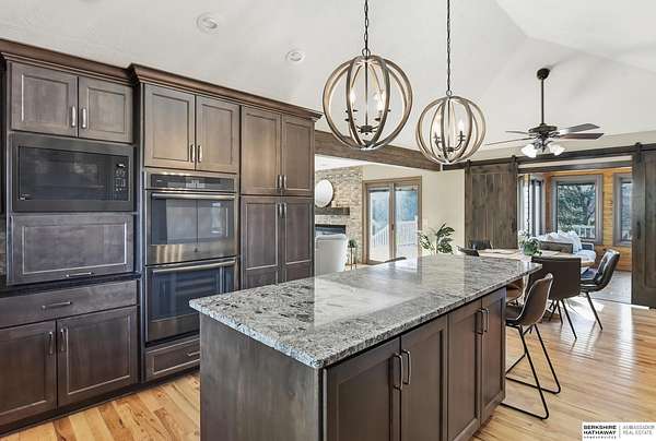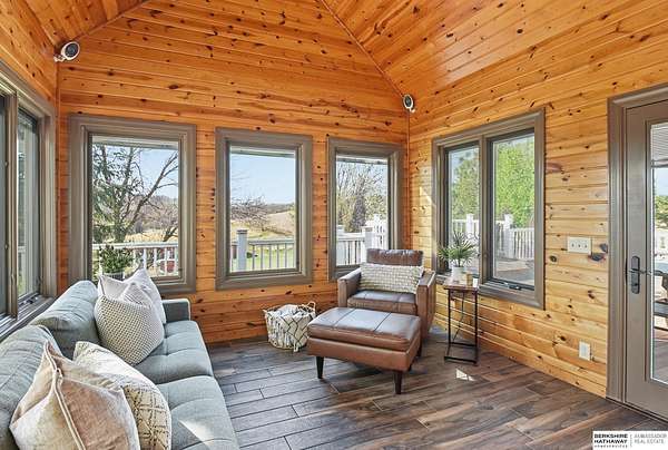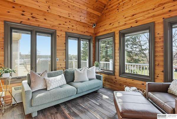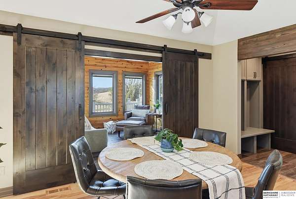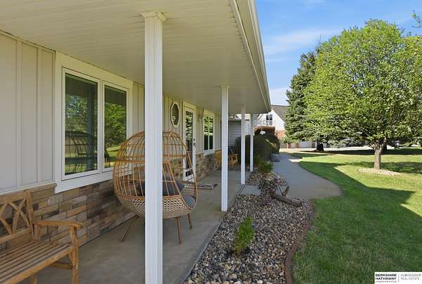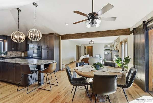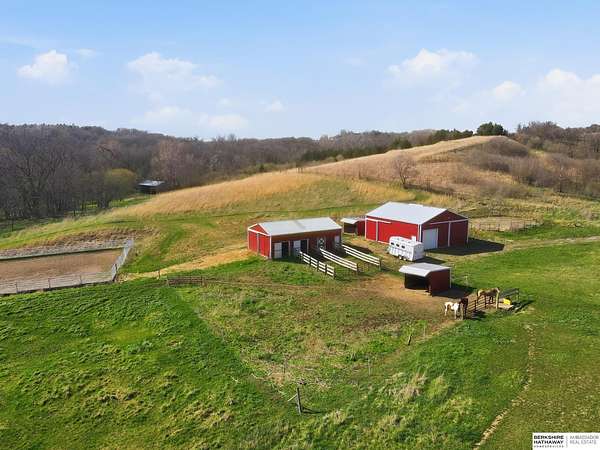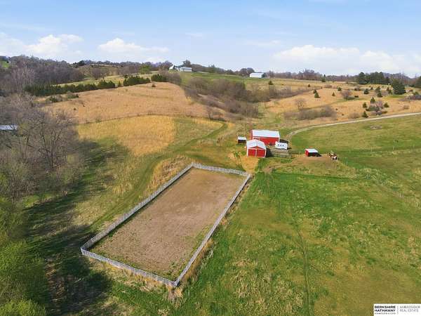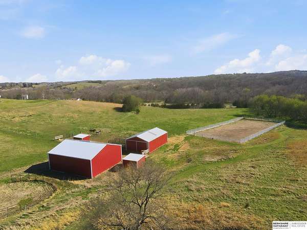 Britney Boltinghouse, M: 402-957-4481, britney.boltinghouse@bhhsamb.com, https://www.bhhsamb.com - Situated on 18 acres of premium, private acreage, this property offers a rare opportunity combining space, functionality, and beautiful updates throughout. Designed for both everyday living and entertaining, this walkout ranch features a main-floor primary suite, main-floor laundry, and a thoughtfully designed layout. The gourmet kitchen and updated bathrooms showcase quality finishes, while custom closets add convenience. The walkout lower level offers expansive living space with a large rec area, separate entertaining zones, and a dedicated workout room. Step outside to take in breathtaking views for miles, complete with a wraparound porch and deck, mature landscaping, and a waterfall feature overlooking a fire pit perfect for relaxing or hosting. The additional detached 3-car garage includes a finished loft above with a kitchenette, bath, living area, and bedroom ideal for guests, hobb