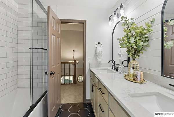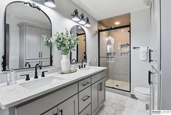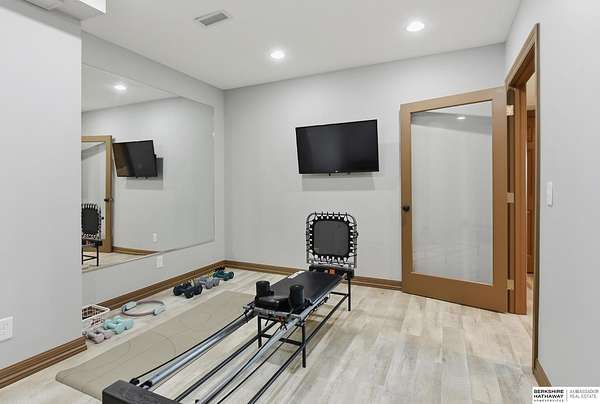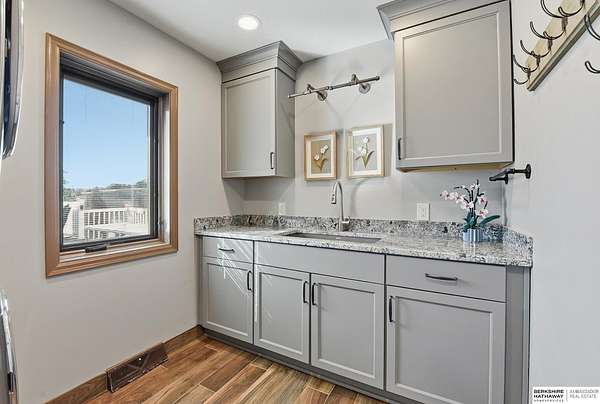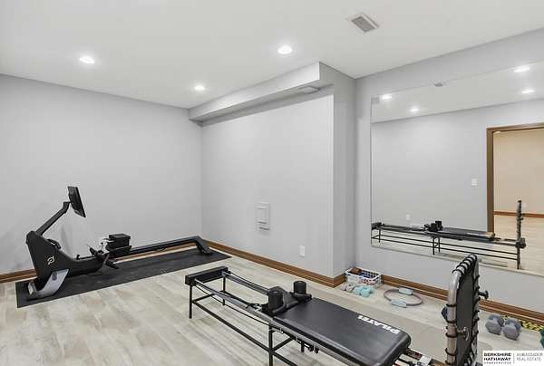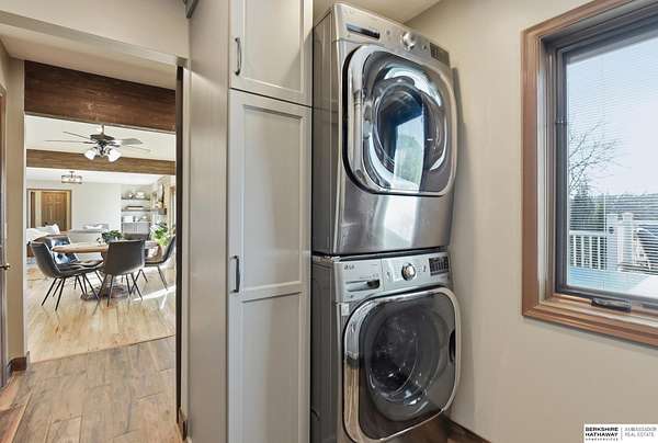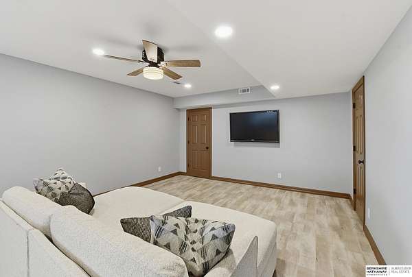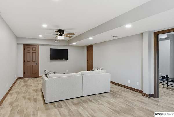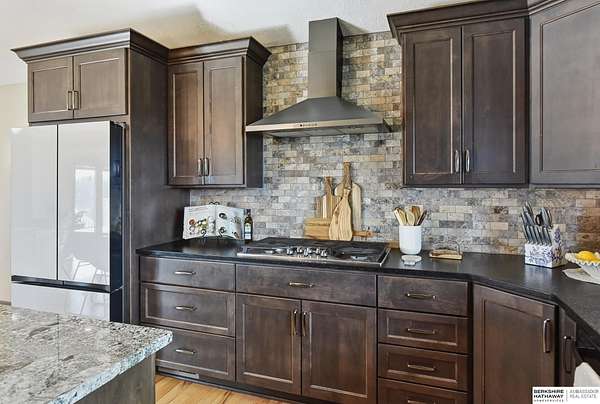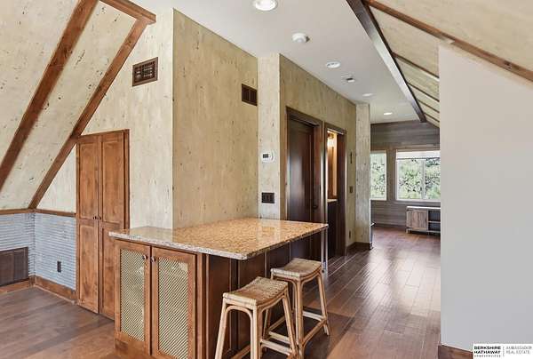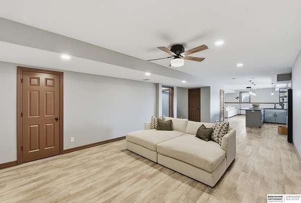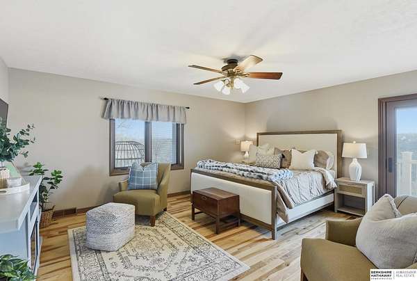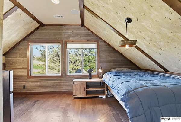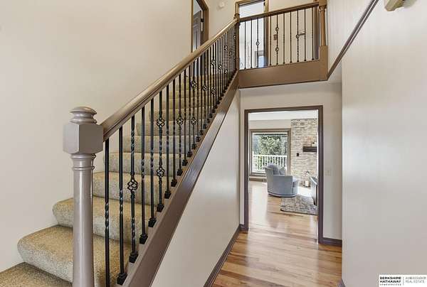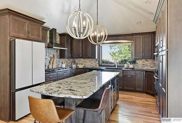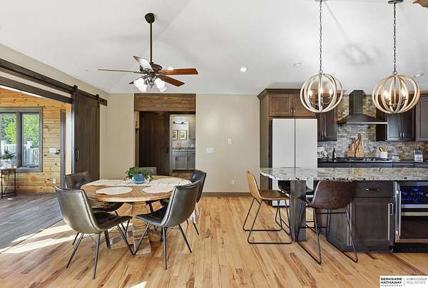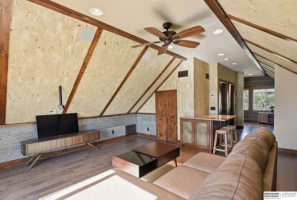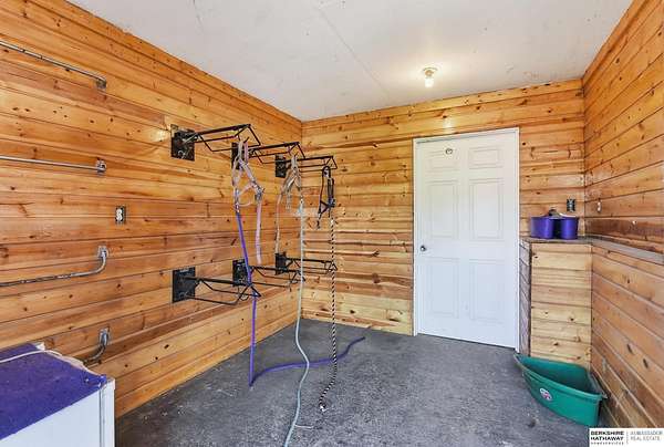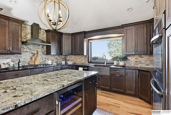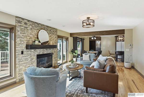 Britney Boltinghouse, M: 402-957-4481, britney.boltinghouse@bhhsamb.com, https://www.bhhsamb.com - Situated on 18 acres of premium, private acreage, this property offers a rare opportunity combining space, functionality, and beautiful updates throughout. Designed for both everyday living and entertaining, this walkout ranch features a main-floor primary suite, main-floor laundry, and a thoughtfully designed layout. The gourmet kitchen and updated bathrooms showcase quality finishes, while custom closets add convenience. The walkout lower level offers expansive living space with a large rec area, separate entertaining zones, and a dedicated workout room. Step outside to take in breathtaking views for miles, complete with a wraparound porch and deck, mature landscaping, and a waterfall feature overlooking a fire pit perfect for relaxing or hosting. The additional detached 3-car garage includes a finished loft above with a kitchenette, bath, living area, and bedroom ideal for guests, hobb