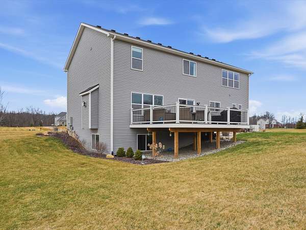 Welcome to Walsh Farms, where peaceful country living meets convenience just minutes from downtown Dexter and Ann Arbor. Set on a private and picturesque 1.66-acre homesite, this custom-built Marhofer Campbell residence offers the perfect blend of timeless craftsmanship, modern upgrades, and refined living. A charming Craftsman-style front porch and stone-accented exterior create a warm and inviting first impression, complemented by extensive landscaping and a new Trex deck. Inside, a grand two-story foyer sets the tone, flanked by a dedicated office and an elegant formal dining room featuring custom wood accent walls. Rich hardwood flooring flows throughout the main living areas, enhanced by updated custom lighting and abundant natural light from the home's ideal southern exposure. The heart of the home is the expansive kitchen, beautifully appointed with espresso cabinetry, granite countertops, a custom backsplash, a breakfast bar, and newer stainless steel appliances. The kitchen opens seamlessly to the informal dining area and inviting family room where a stacked stone gas fireplace with a reclaimed barn beam mantel creates a warm and sophisticated focal point. Designed for everyday ease, the main level also features a convenient laundry room with a new utility sink and a main-floor powder room. Upstairs, the luxurious primary suite offers a private retreat with a tray ceiling and spa-like bath featuring a tiled shower and granite finishes, along with three additional generously sized bedrooms, one of which has an en-suite, another guest bathroom, and a versatile loft perfect for a reading nook, family room or study area. The daylight lower level offers high ceilings, multiple daylight windows, and is already plumbed for a full bathroom, providing excellent potential for future finished living space. The home is equipped with modern smart features including a Ring security system with video doorbell, driveway and backyard spotlight cameras, a Nest smart thermostat, a whole-house generator, a sprinkler system and a wireless dog fence. A spacious three car garage completes this exceptional home, offering the perfect balance of privacy, functionality, and convenience with close proximity to top-rated Dexter schools, shopping, dining, and Ann Arbor. Be sure to check out the narrated video tour and list of features and updates!