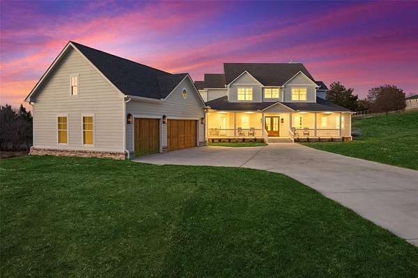 Oversized 3 car garage, wraparound porch, covered patio, sprinkler system, aerobic septic & wide open Texas sunsets complete this Anna luxury acreage property.