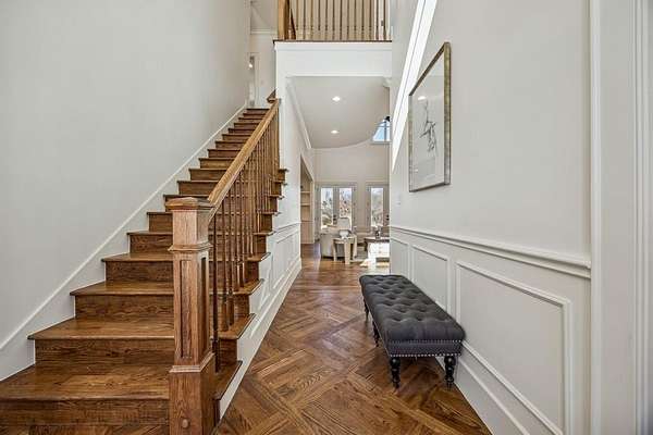Inside you will find solid oak hardwood flooring, vaulted ceilings, custom millwork & an open floor plan. The chefs kitchen features an 8 burner gas range w double oven, Thor built in microwave oven, 1200 CFM vent hood, large island, granite countertops, butlers pantry, walk in pantry & upgraded fixtures. The living room includes a true wood burning fireplace w gas starter.